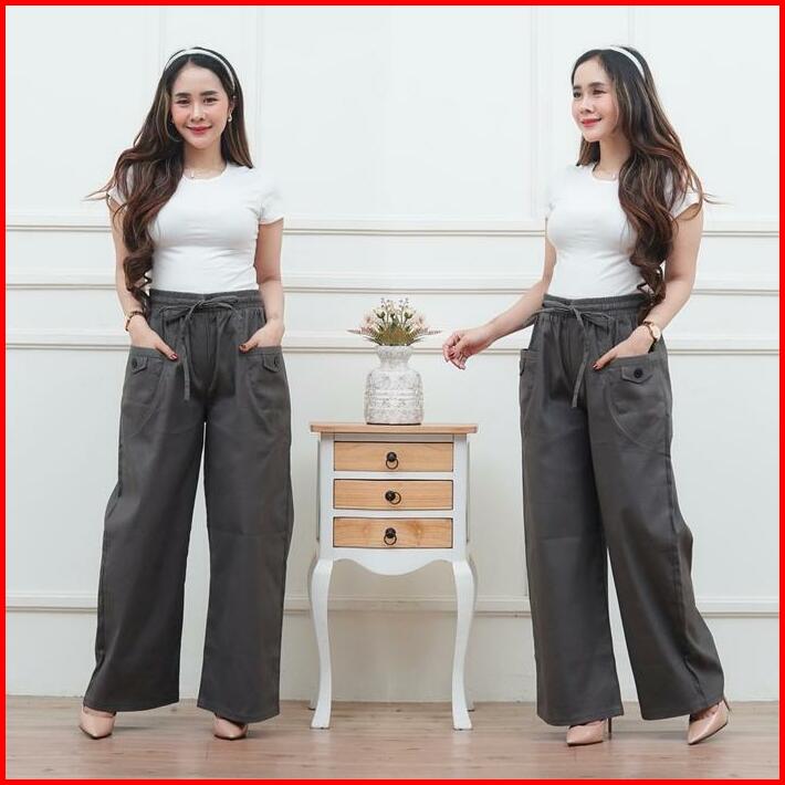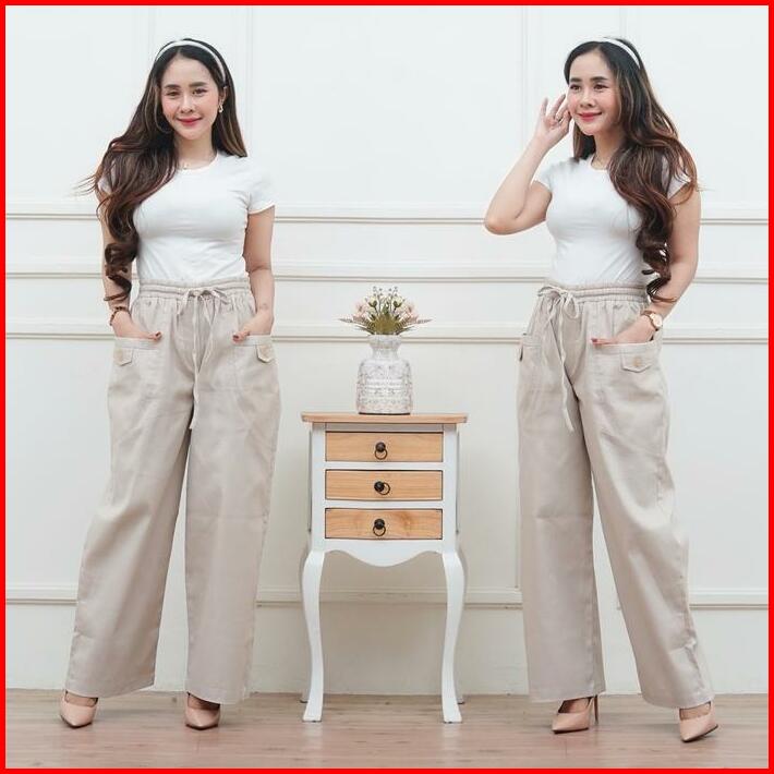 Kulot Wanita Highwaist Premium Kantong Depan Variasi Kancing Kekinian Korean Style