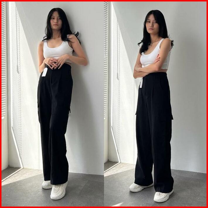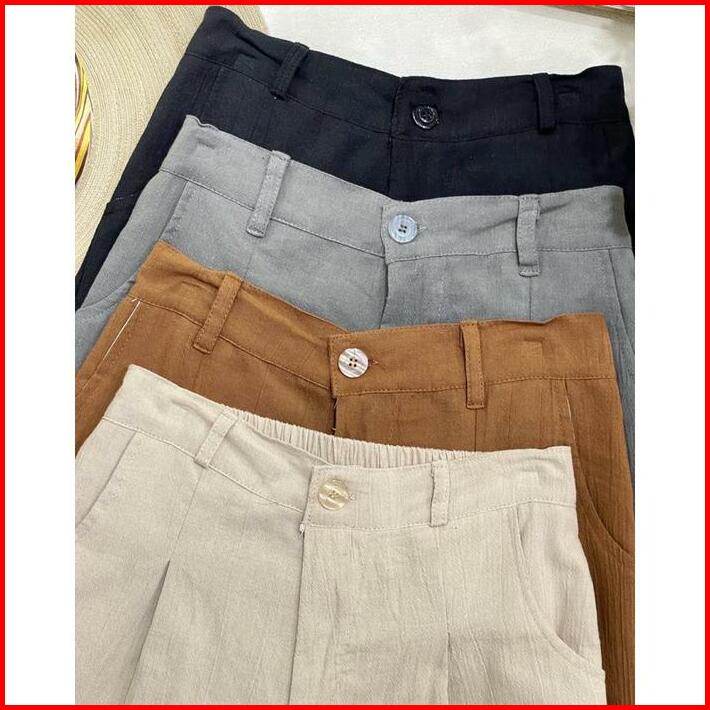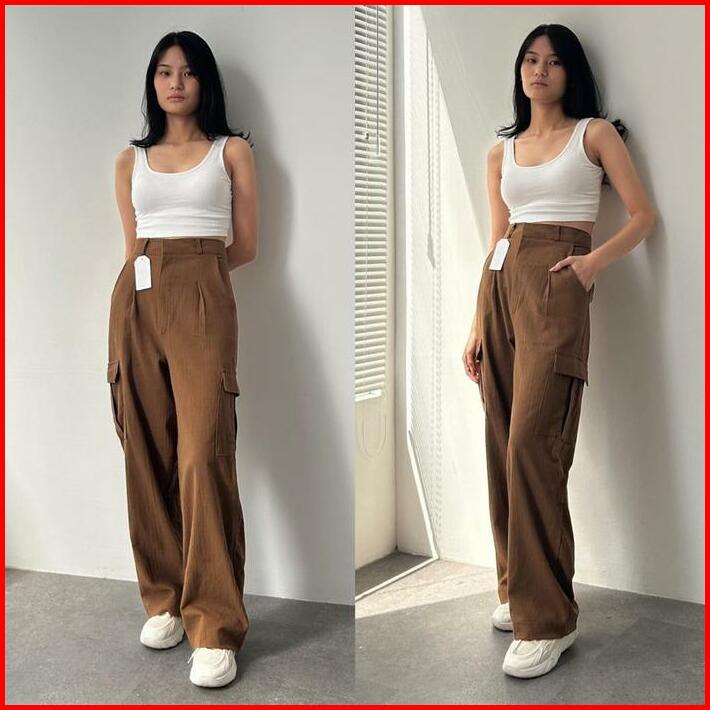 Celana Kargo Linen Crinkle Highwaist