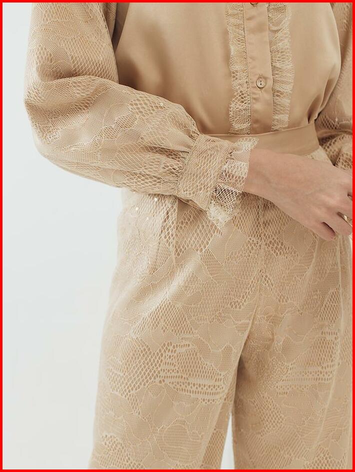 Kadaka B-0194 Kulot Highwaist Wanita Satin Chantilly Lace Celana Panjang