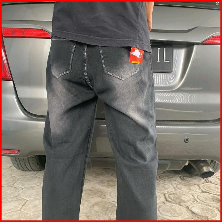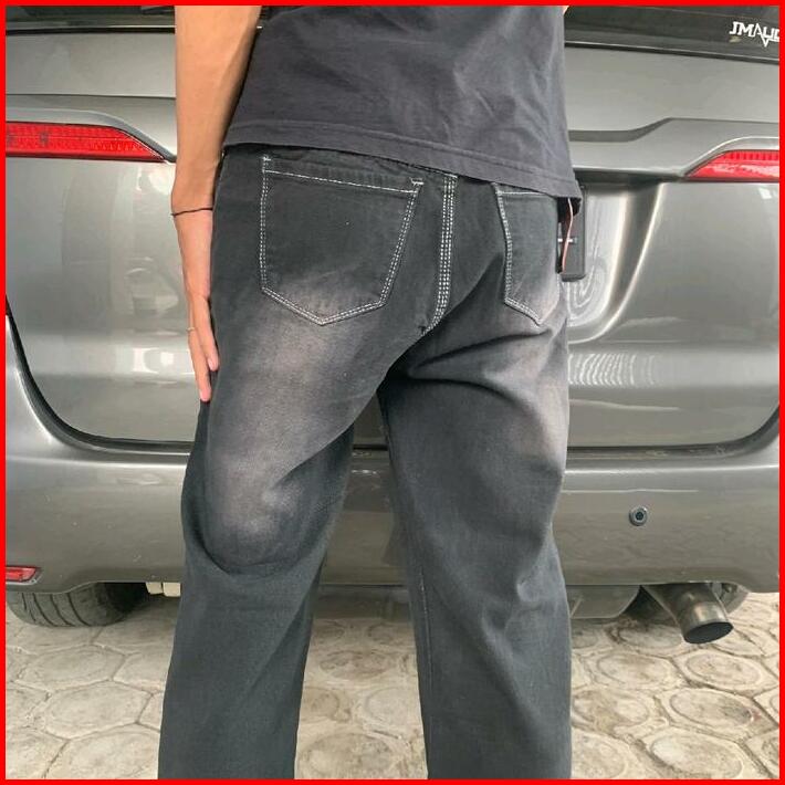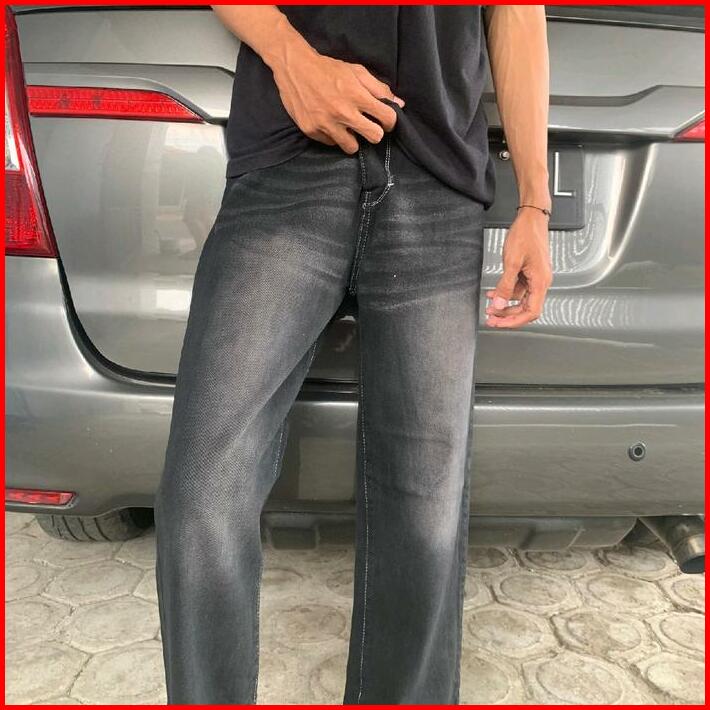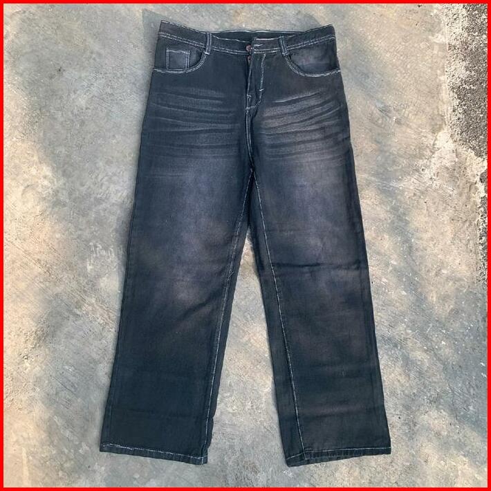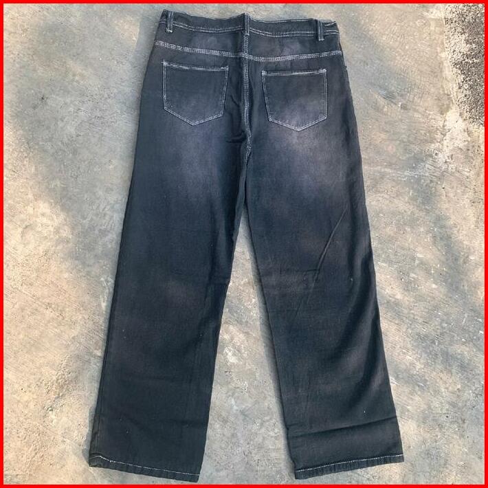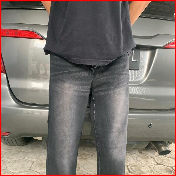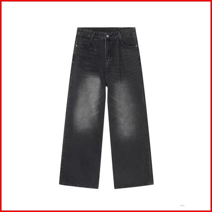 Mudzabit Highwaist Kulot Loose Jeans Unisex Longgar Hitam Spray Ala Korean Style Pria Wanita Gombrang Fadding Panjang Ka