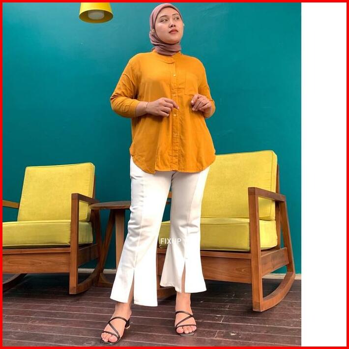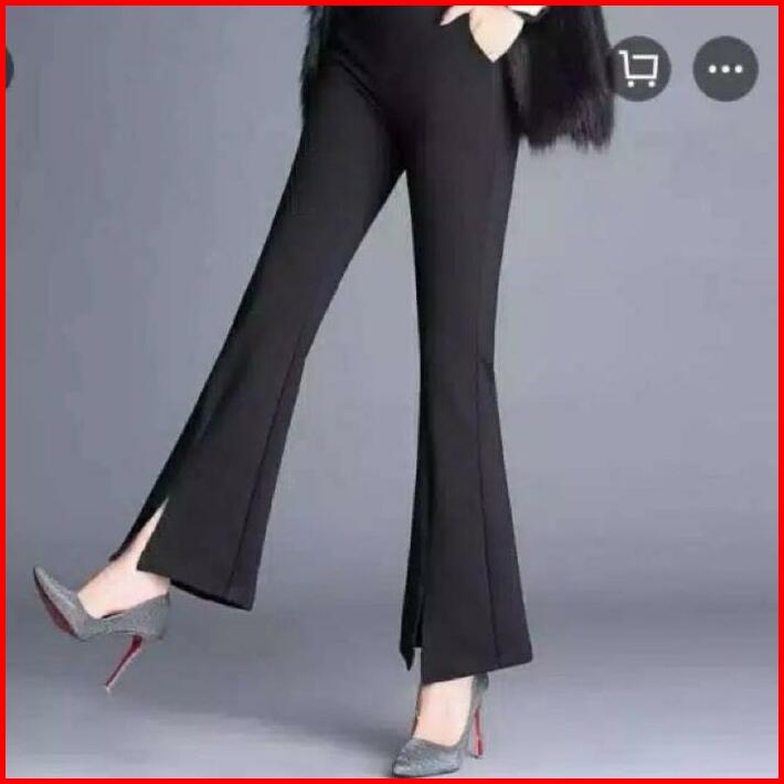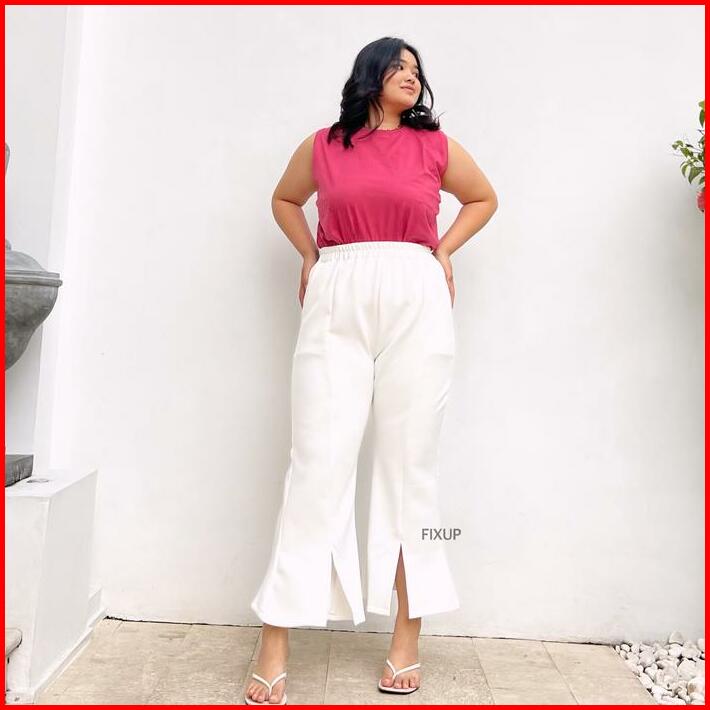Fixup M-xxxxl Mona Cutbray Highwaist Kulot Anti Lecek Wanita Celana Panjang Hitam