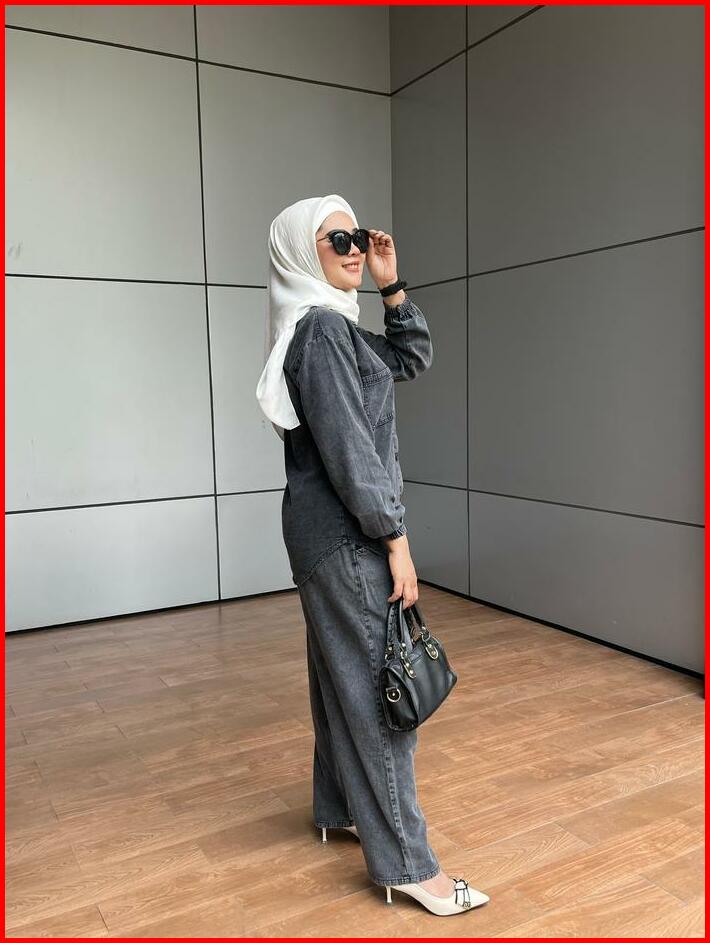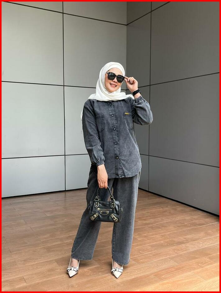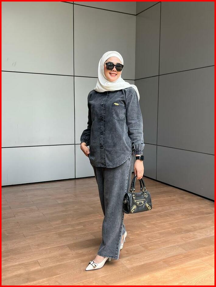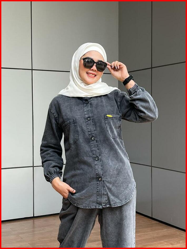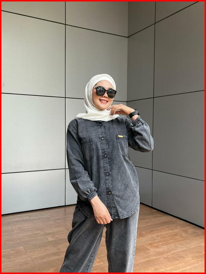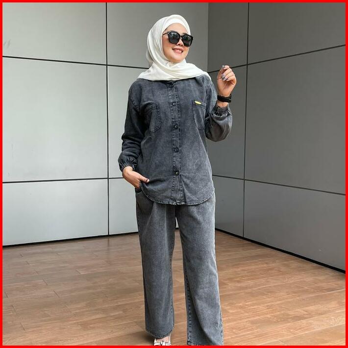 Aldira Setelan Wanita Full Jeans Blackwash Saku 2 Terbaru2024 Jumbo Atasan Dan Celana Oneset Wanita Formal Nyaman Casual