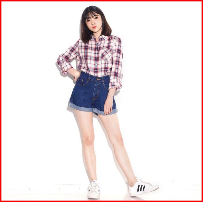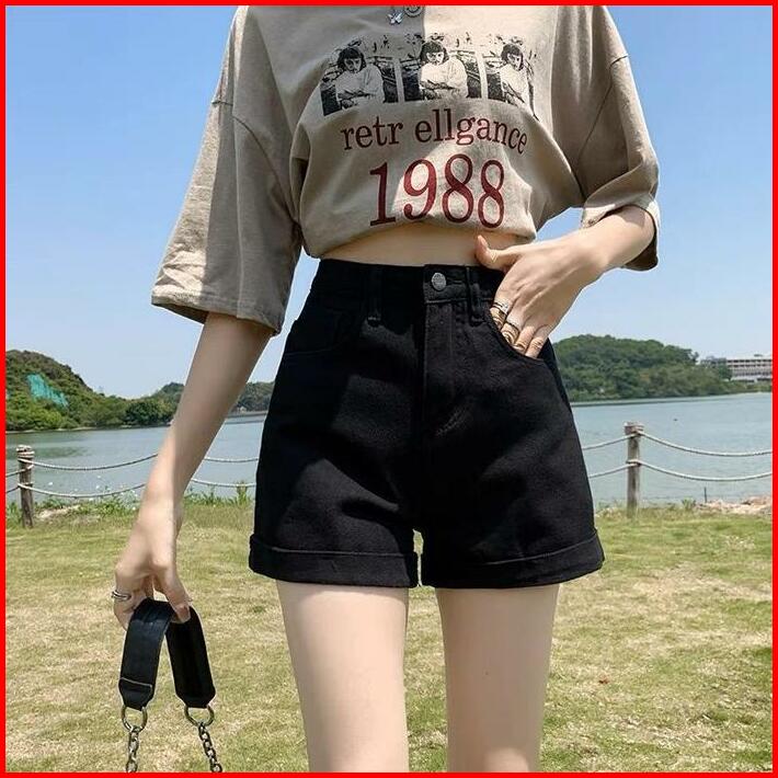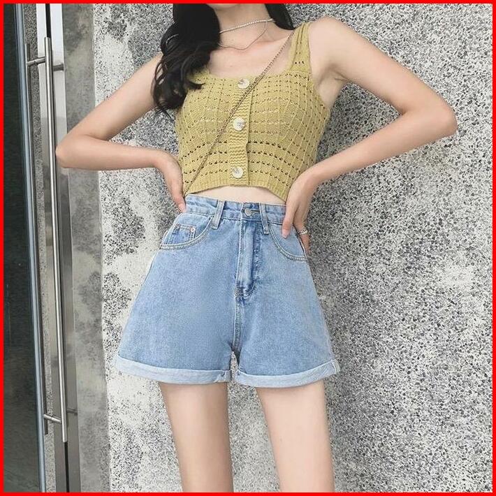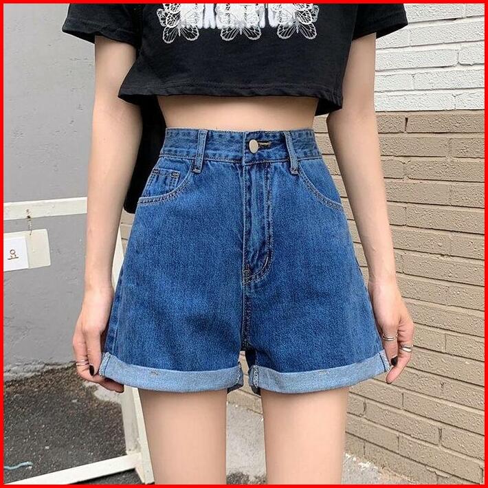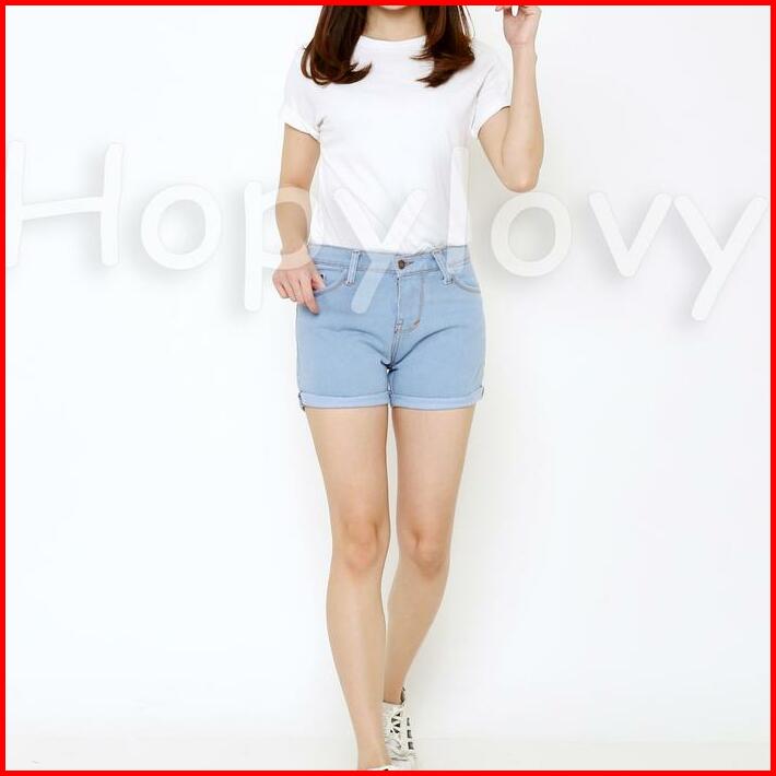 Celana Hotpants Wanita Jeans Highwaist Model Lipat Polos Celana Pendek Wanita Jeans Non Stretch Ada Kantong Celana Pende
