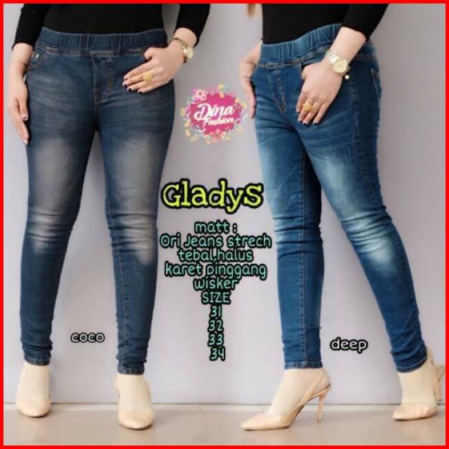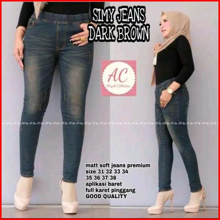 Celana Jeans Wanita Jumbo Model Wisker Nyaman Celana Denim Panjang Wanita Pinggang Karet Brown Stretch Legging Cewek Cel