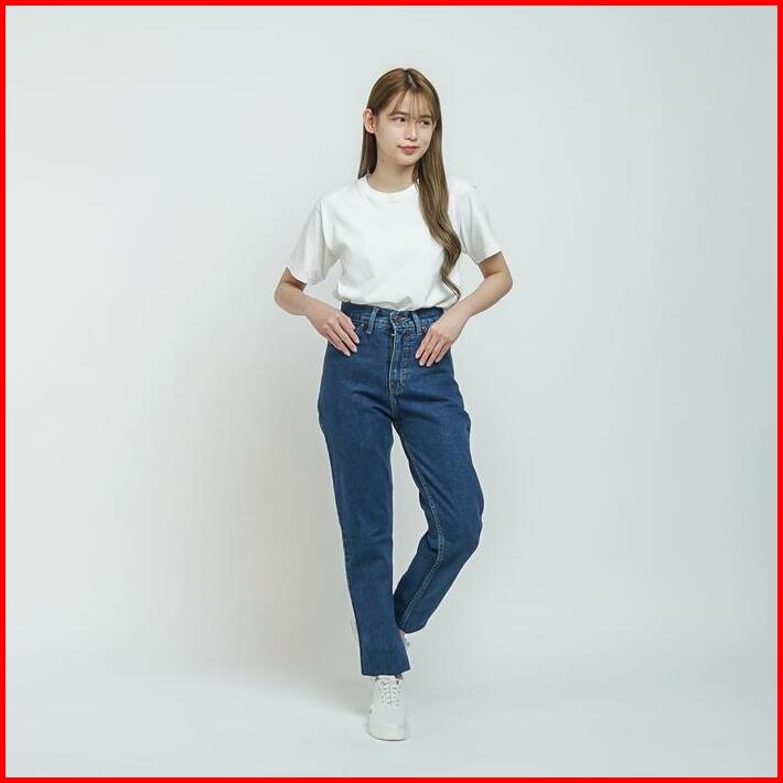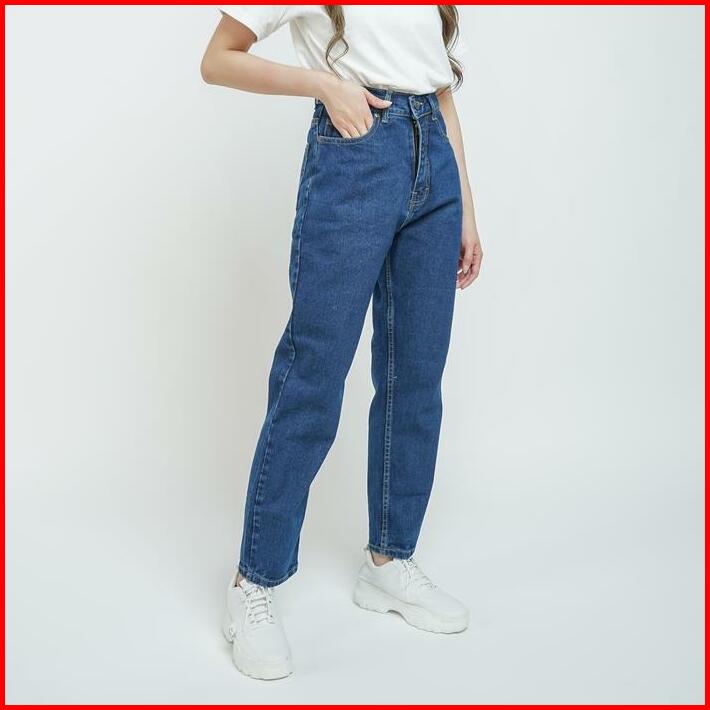 Esrocte Celana Panjang Rubber Karet Boyfriend High Waist Mom Jeans Wanita Cewek P43