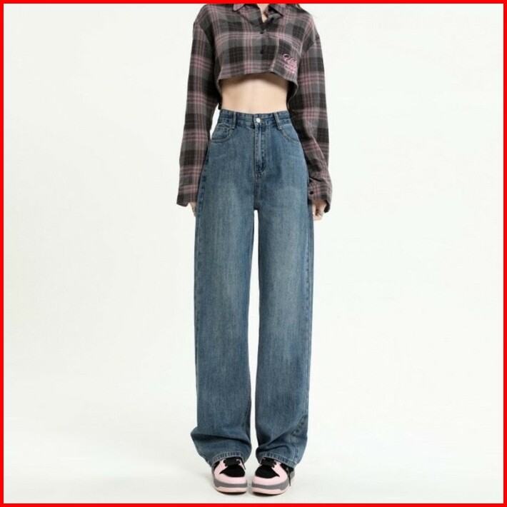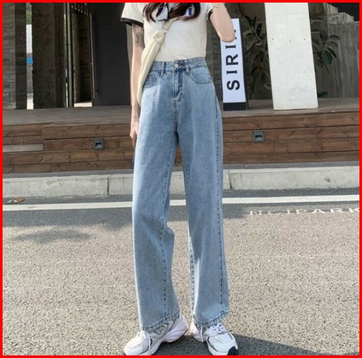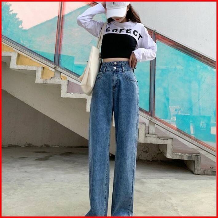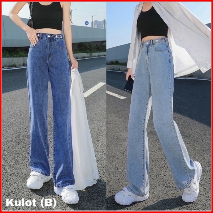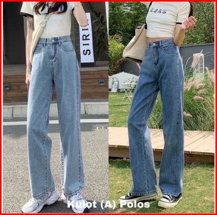 Celana Jeans Wanita Highwaist Kulot Kaki Lurus Lebar Import