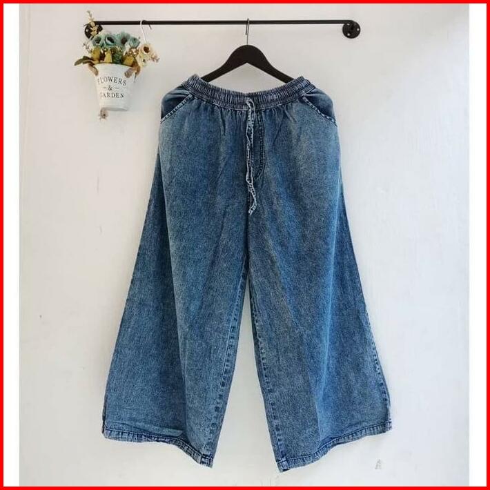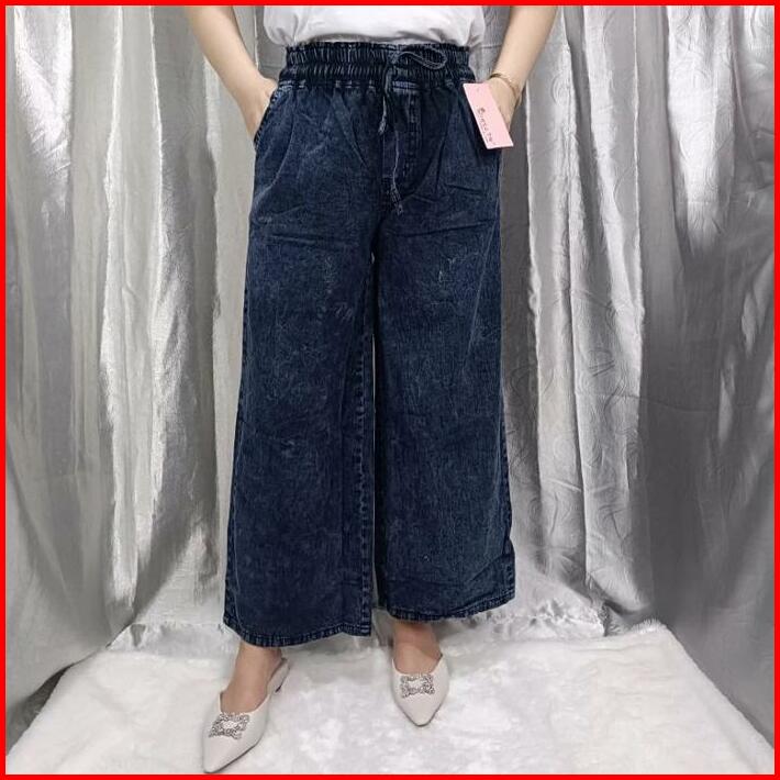 Celana Jeans Kulott Super Jumbo Pinggang Karet Wanita