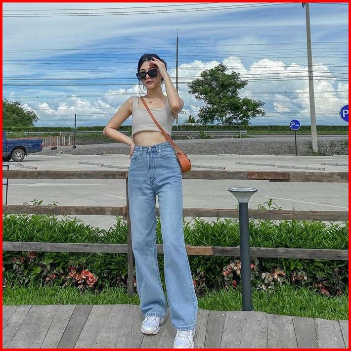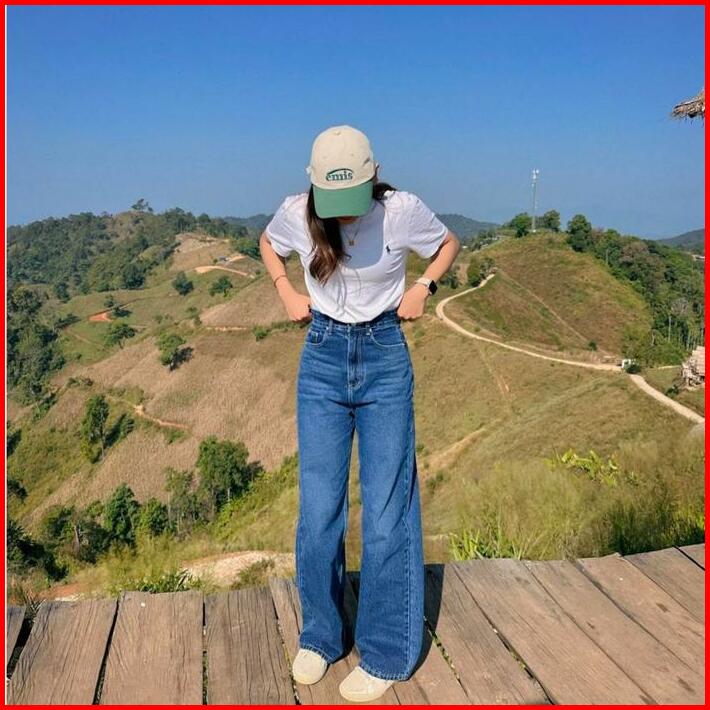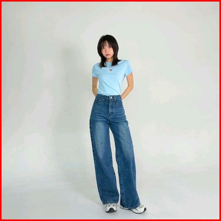 Pd Celana Jeans Wanita Blue Retro Loose Jeans Retro Wide Leg Pants Panjang Denim Cewek Santai Stretch