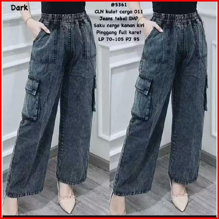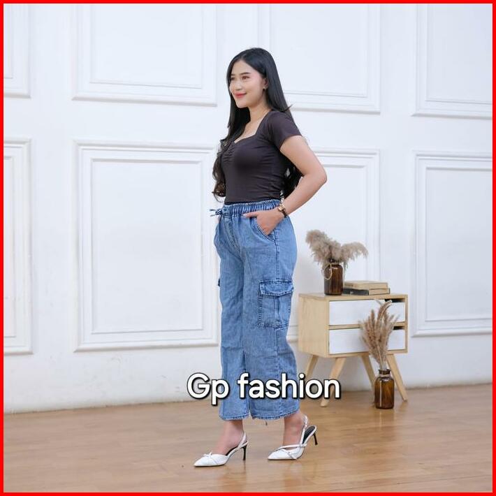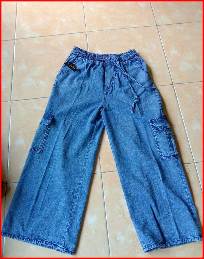 Celana Kulot Kargo Jeans Wanita Panjang Full Karet Dewasa Denim Standar Jumbo Katun Nyaman Soft Fit