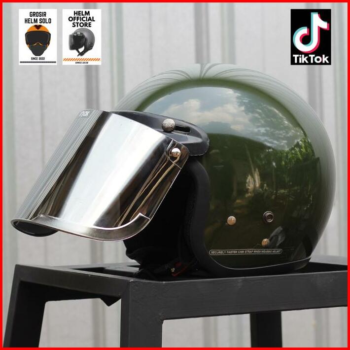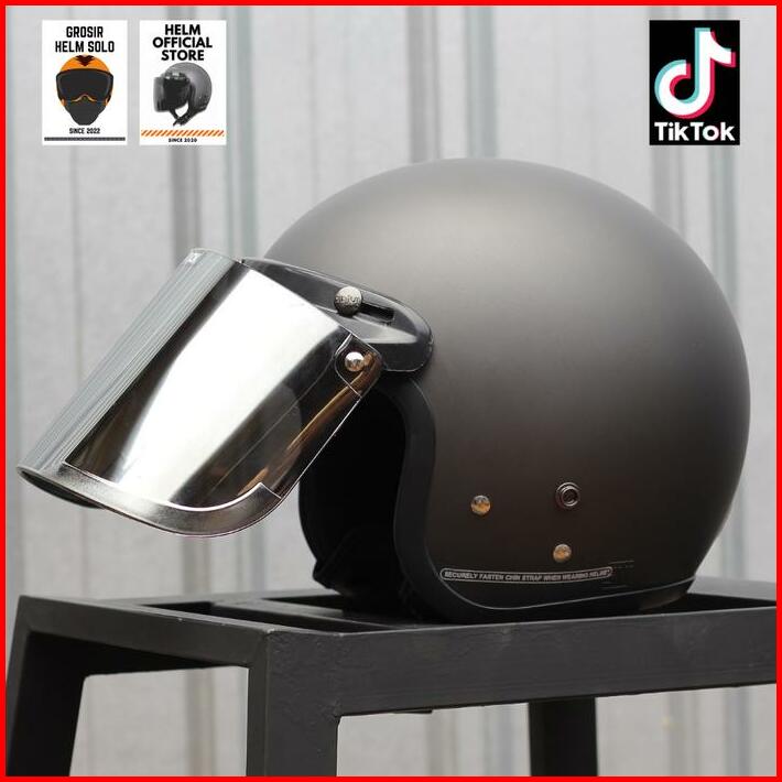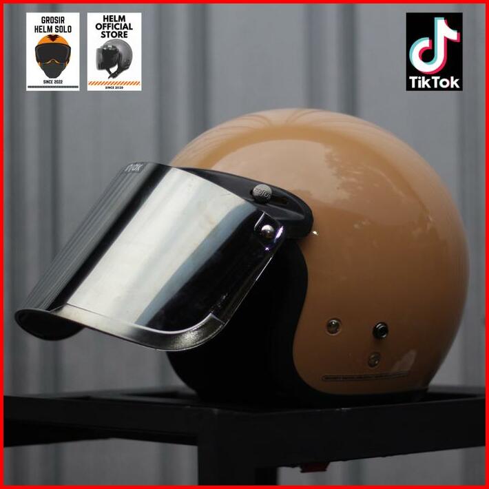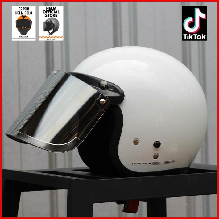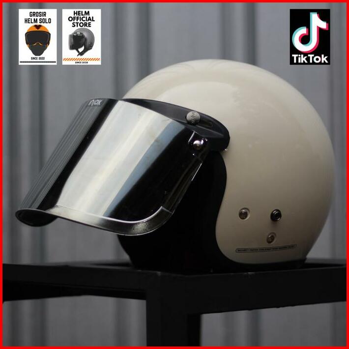 Helm Bogo Dewasa Pria Wanita Kaca Datar Silver Full Leher Sni