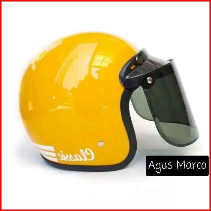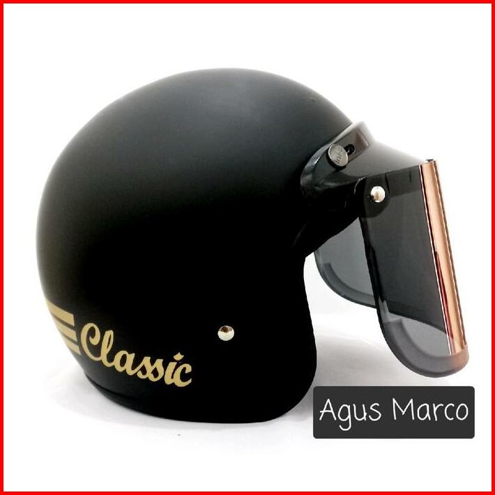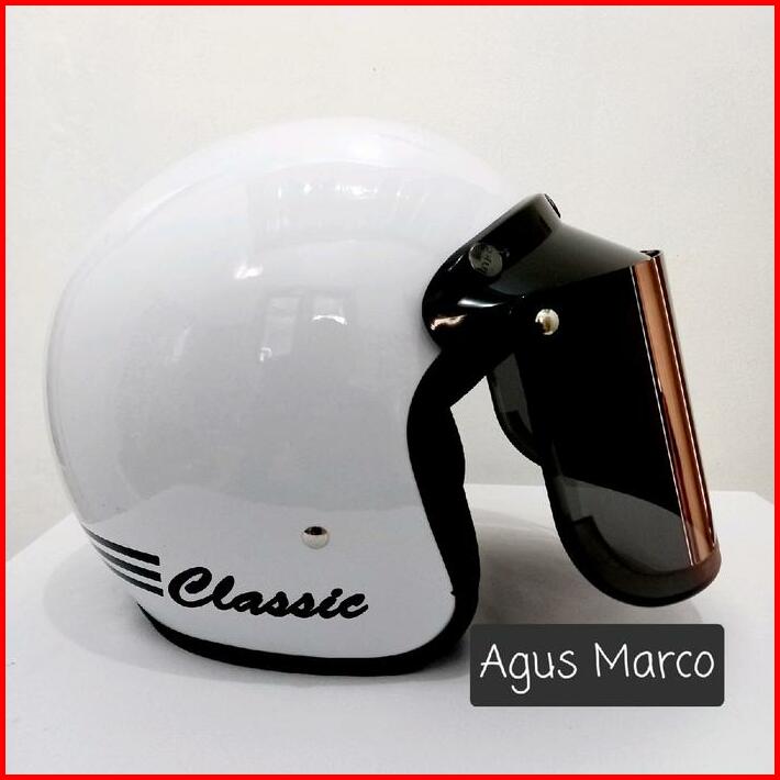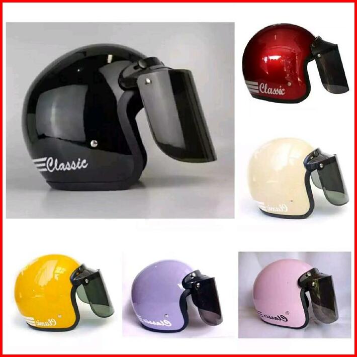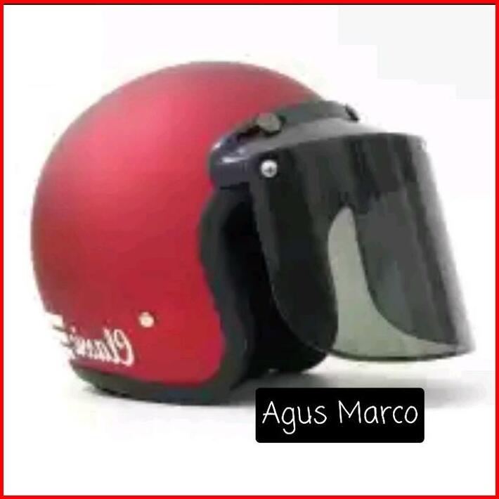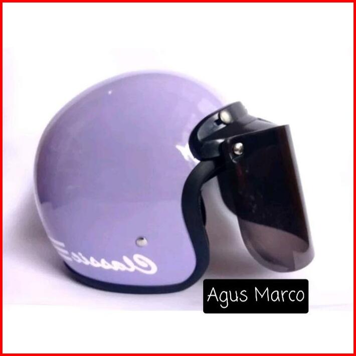 Helm Bogo Garis Klasik Classic Kaca Flat Smoke Gelap Warna Merah Biru Hitam Doff Marun Glosy Ungu Pink Kunong Abi Grey P