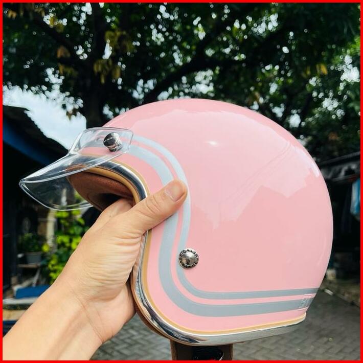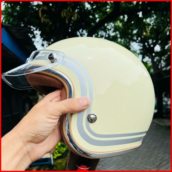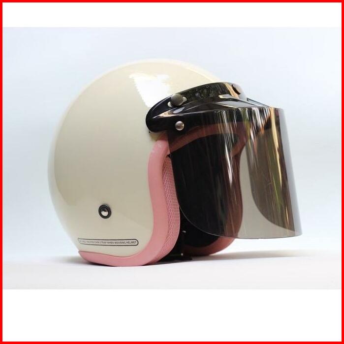 Helm Wanita Hijab Cream Pastel Sni 2022 Motorcycle Kaca Datar Kaca Cembung