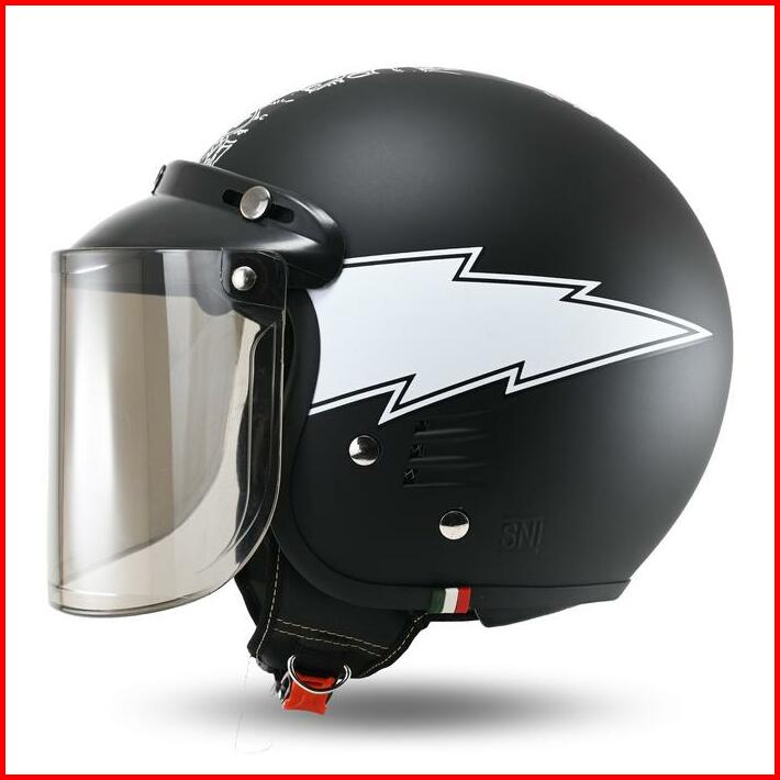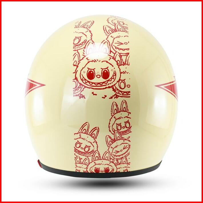 R-six Helm Bogo Motif Labubu Terbaru Helem Retro Full Leher Pria Wanita Dewasa Sni Motorcycle Visor Kaca Datar