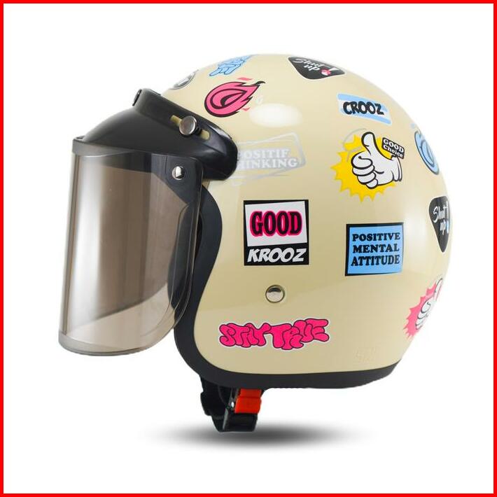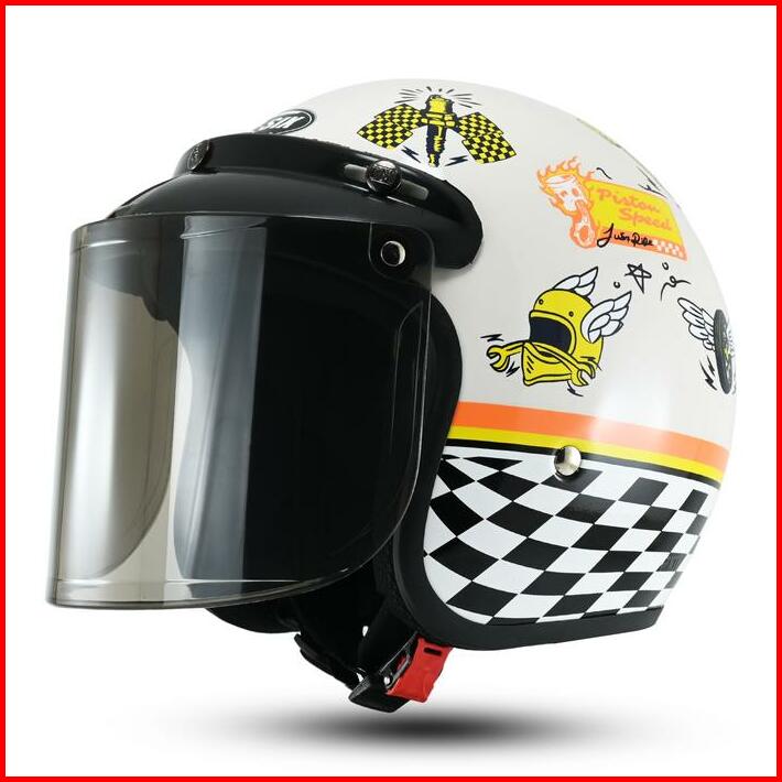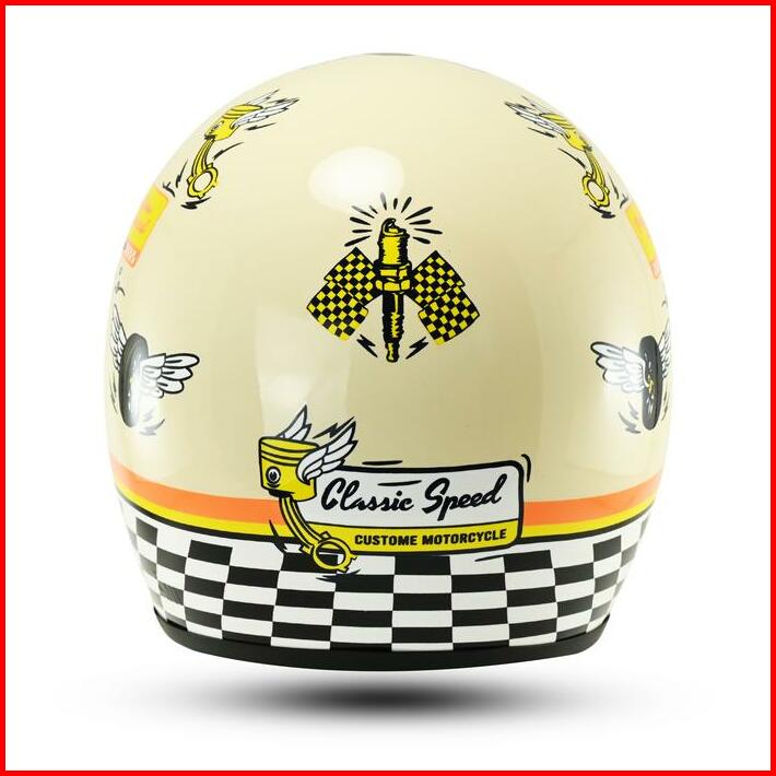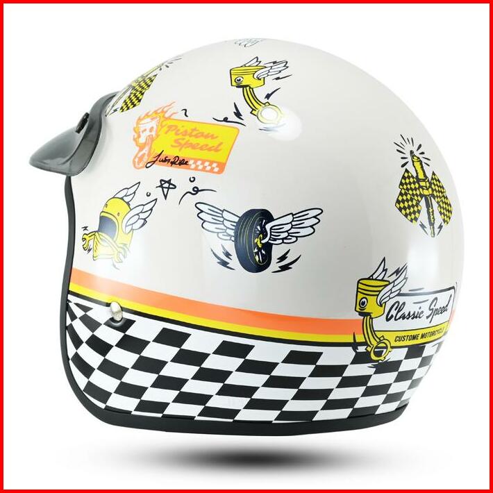 Helm Rsix Retro Bogo Pria Wanita Sni Terbaru Motif Piston Speed Custom Motorcycle Kaca Datar Cembung Helmet Cargloss Hij