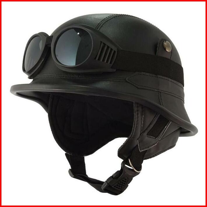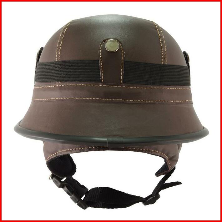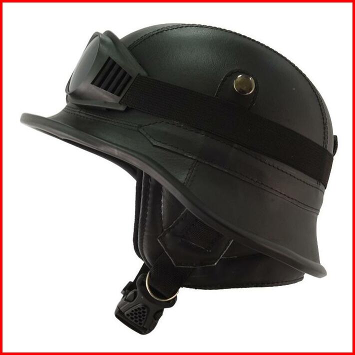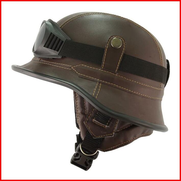 Helm Nazichips Retro Klasik Wanita Pria Handmade Chip Synthetic Leather With Goggle Kacamata Coklat Motor