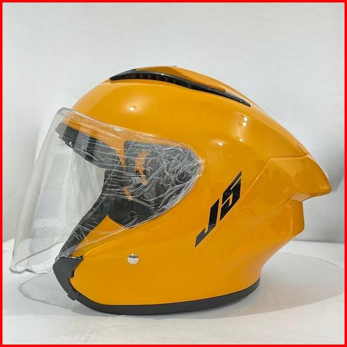 Helm Kekinian Untuk Sanmory Half Face J5 Mla Solid Kuning Mustard Visor Clear Smoke Hitam Premium Sni Dewasa Pria Wanita