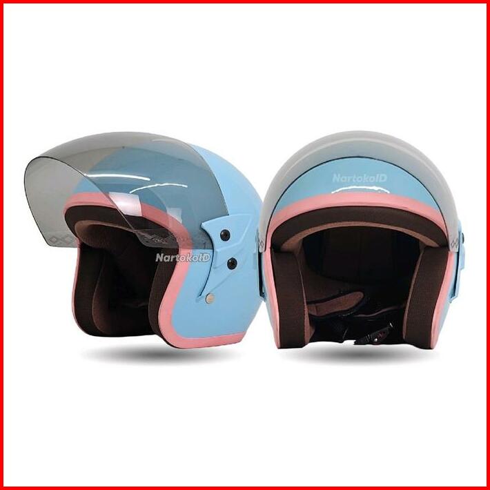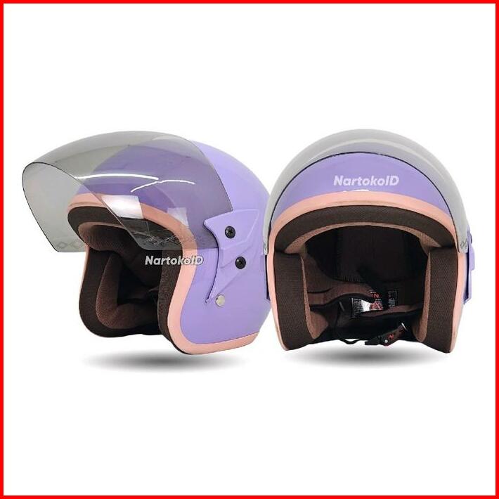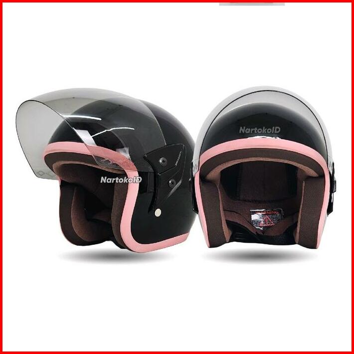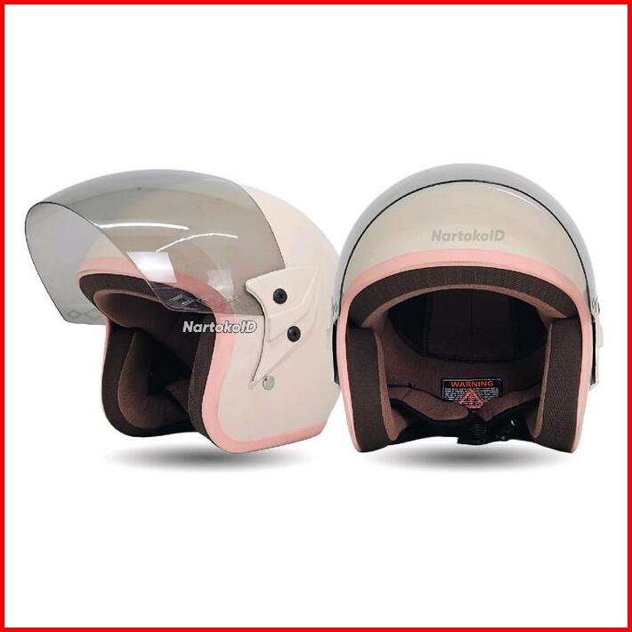 Helm Single Visor Wanita Warna Lucu Polos List Pink Aestetic Motorcycle