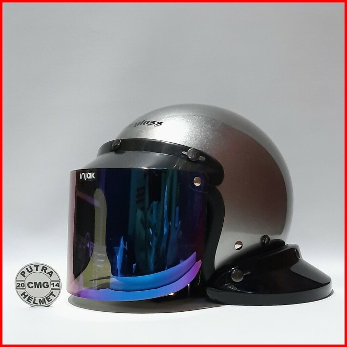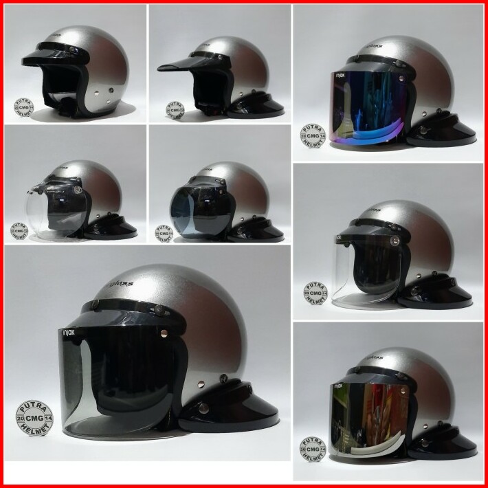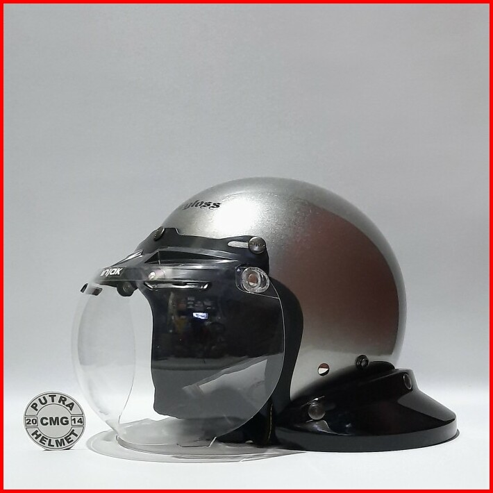 Paket Helm Cargloss Original Retro Silver Met Kaca Datar Flat Cembung