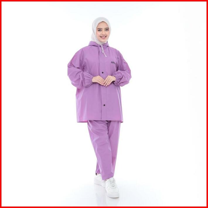 Jas Hujan Wanita Setelan Celana Warna Pastel Tebal Kuat Elastis Pvc Akula
