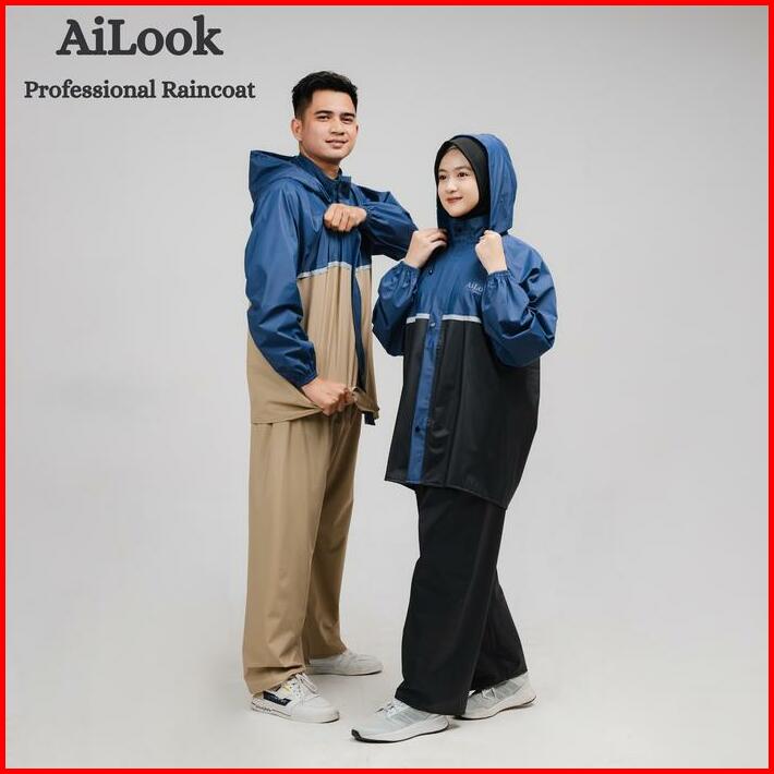 Jas Hujan Setelan Ailook Full Sealer Pria Wanita Anti Rembes Elastis Tahan Air Bahan Pvc 0.25 Tebal