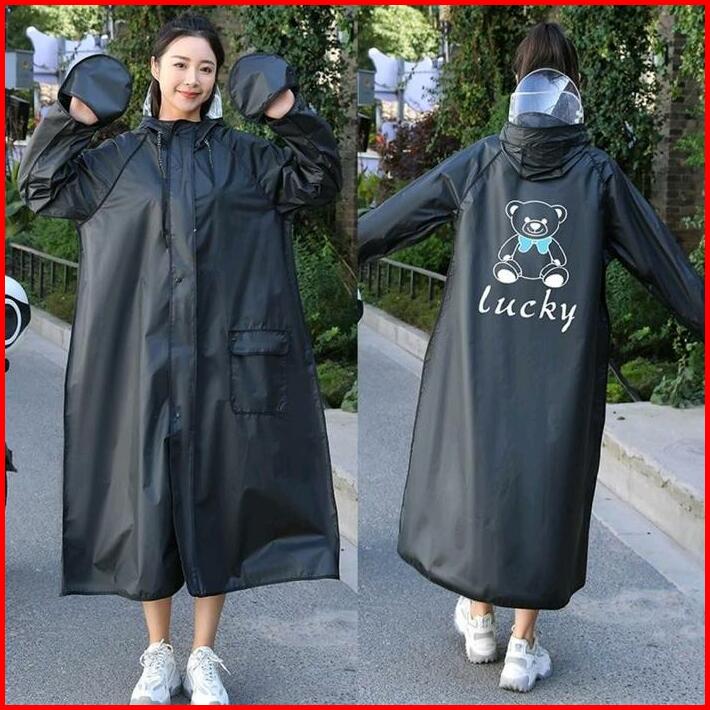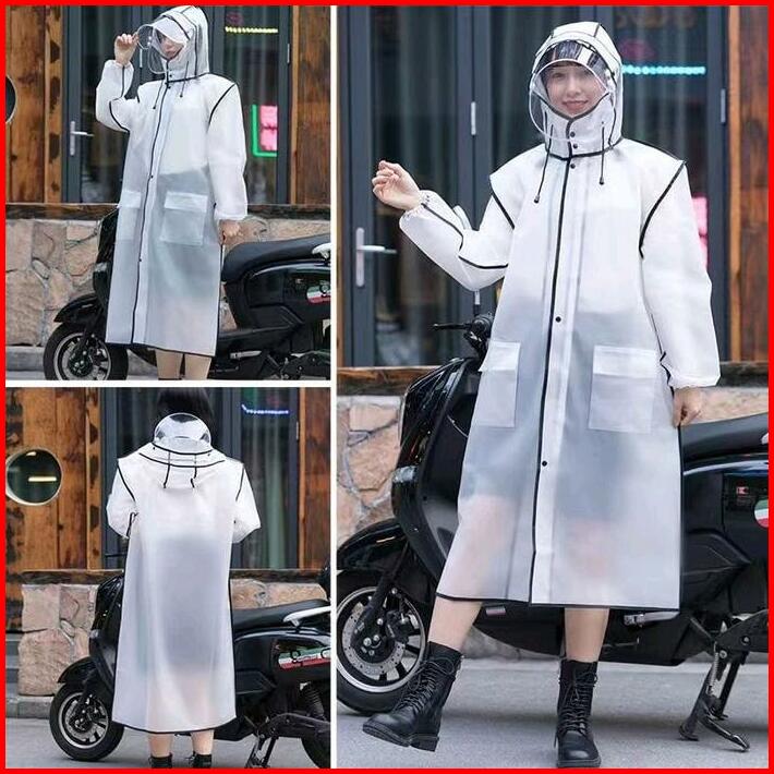 Jas Hujan Terusan Dewasa Zipper Korea Style Raincoat Mantel Hujan Zipper Faceshield Pria Wanita Cakep