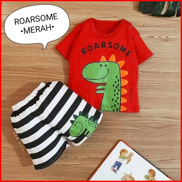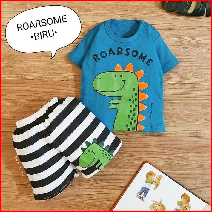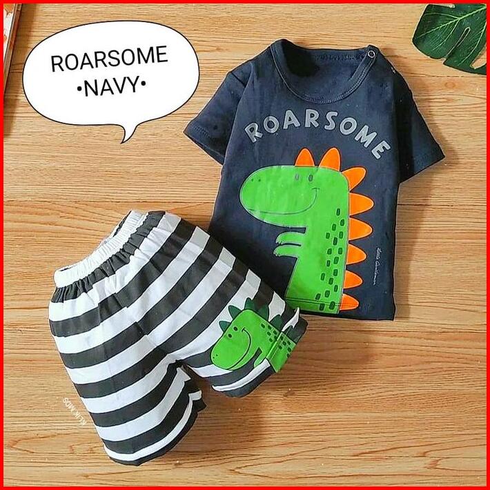 Mds Setelan Baju Anak Bayi Laki-laki Atasan Dan Celana Motif Karakter Roar Some Dino 1 Ukuran