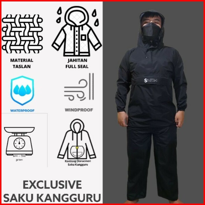 Jas Hujan Saku Kangguru Sndr Hitam Jumbo Xxl Bahan Taslan Tebal