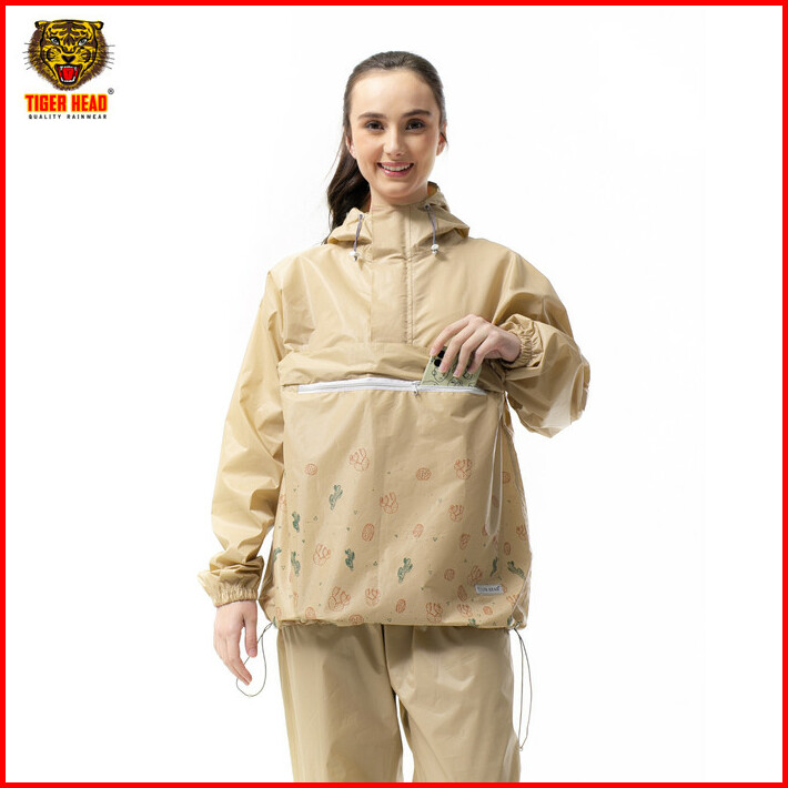 Tiger Head Jas Hujan Kantung Kangguru Olivia