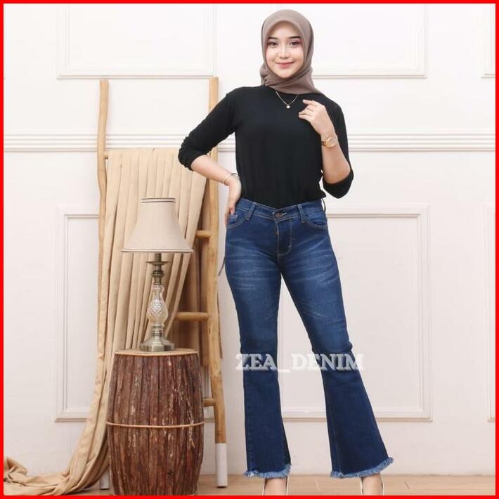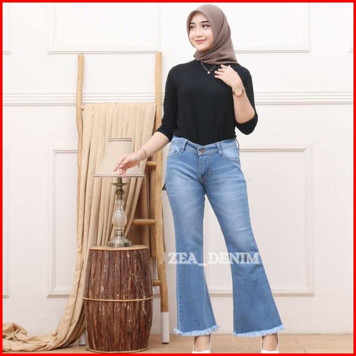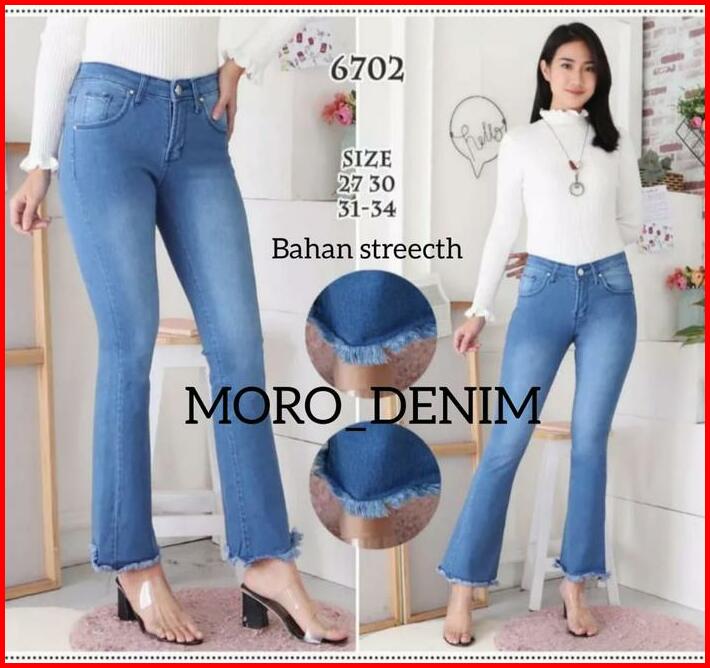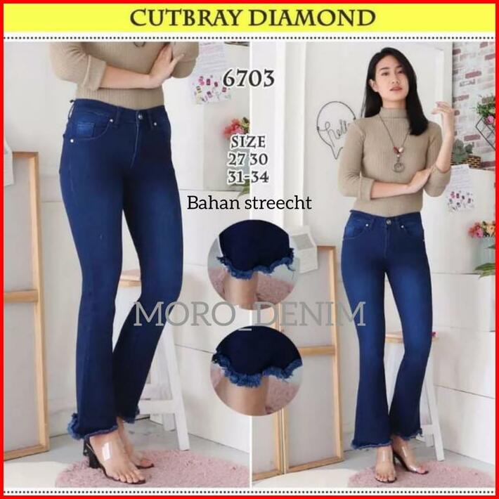 Celana Jeans Cutbray 27-38 Jumbo Rawis Wanita Bahan Softjeans Strecth Melar