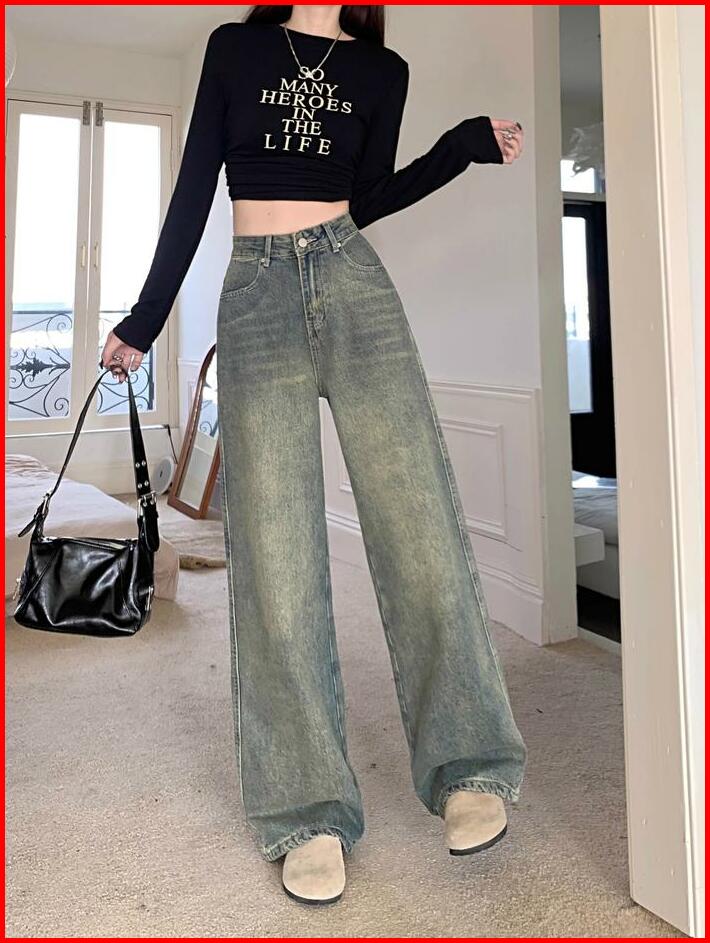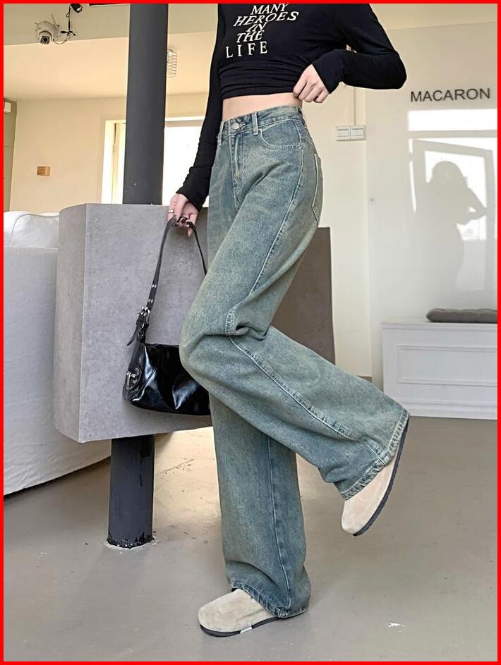 Biru Retro Highwaist Celana Jeans Wanita Loose Kekinian