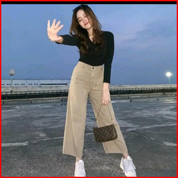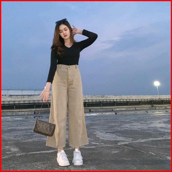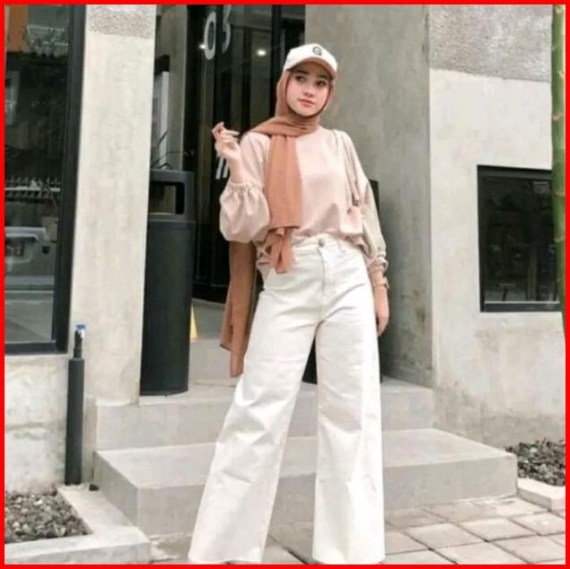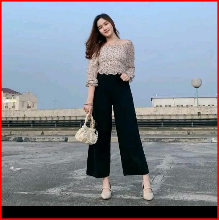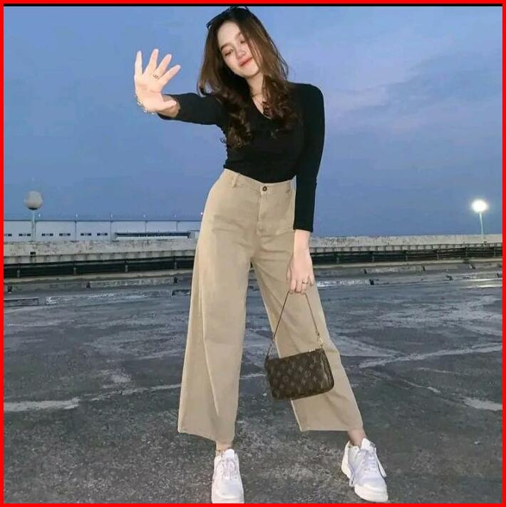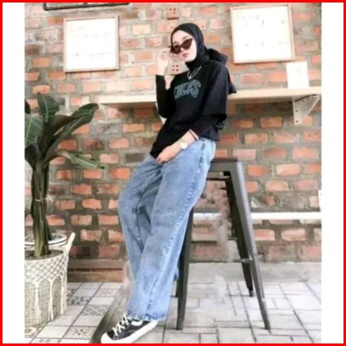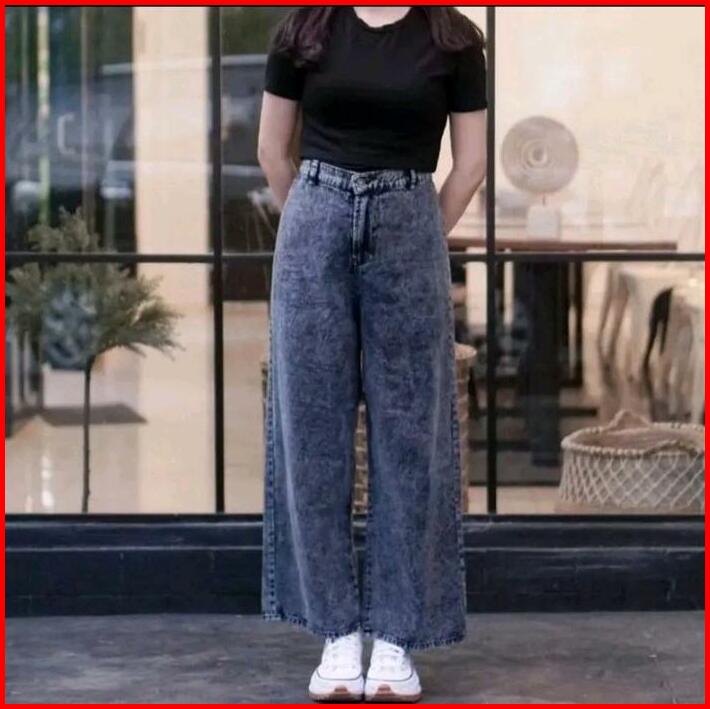 Celana Kulot Higtwaist Kulot Mozza Wanita Kulot Jeans Wanita Hitam Karet Panjang Biru Denim Nyaman