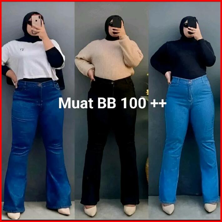 Celana Highwaist Cutbray Loose Wanita Super Jumbo Size 39-42 Strech