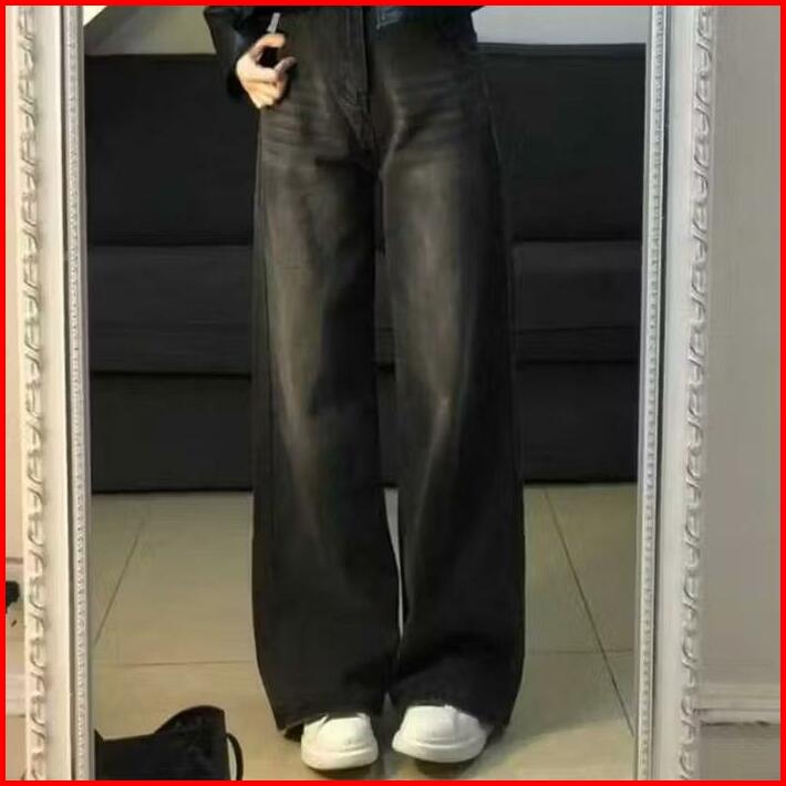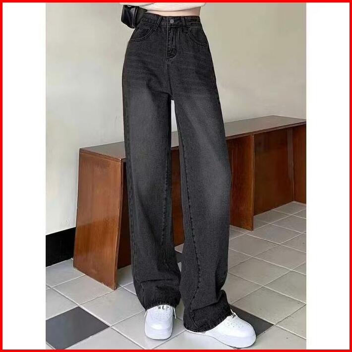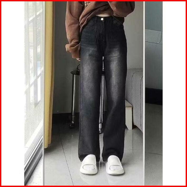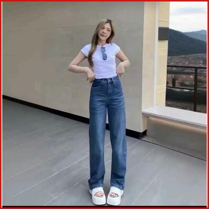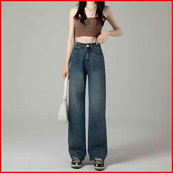 Unisex Celana Panjang Loose Retro Wanita Pria Denim Loose Jeans Premium Korean Stayle Pria Dan Wanita Muda Biru Nyaman S