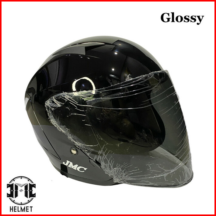 Helm Jmc Half Face Premium Edition Clear Visor Black Glossy Dewasa