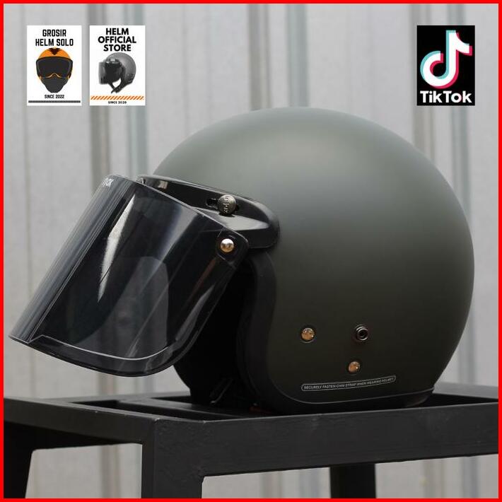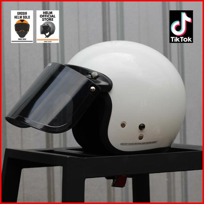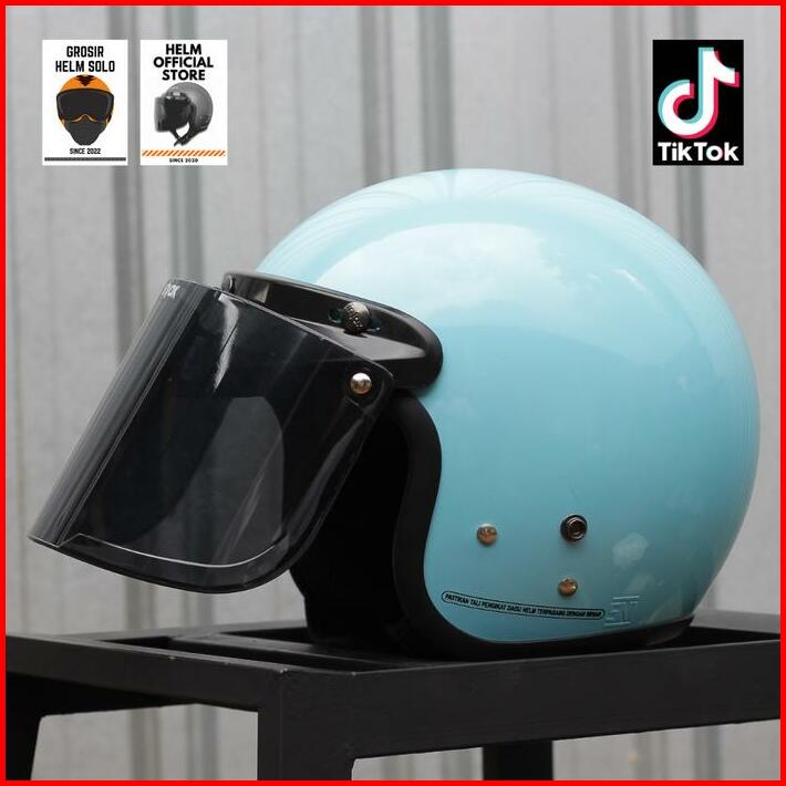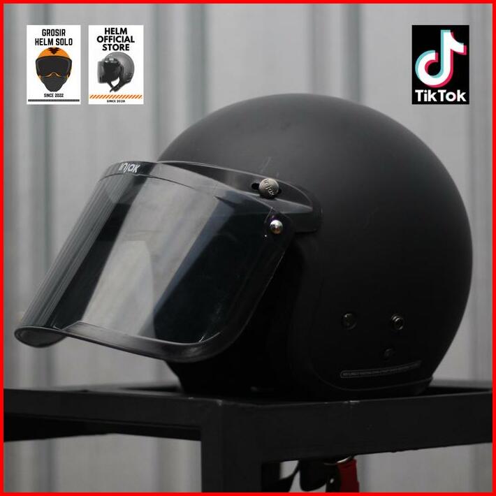 Helm Bogo Dewasa Pria Wanita Kaca Datar Hitam Murah Sni