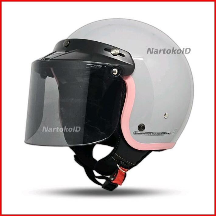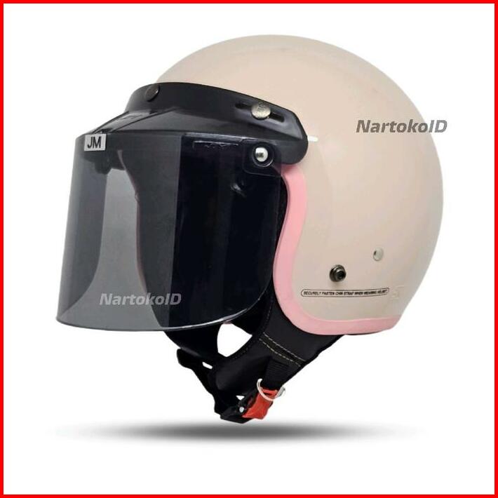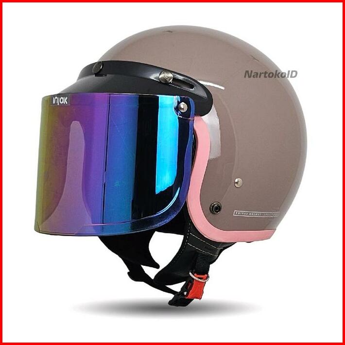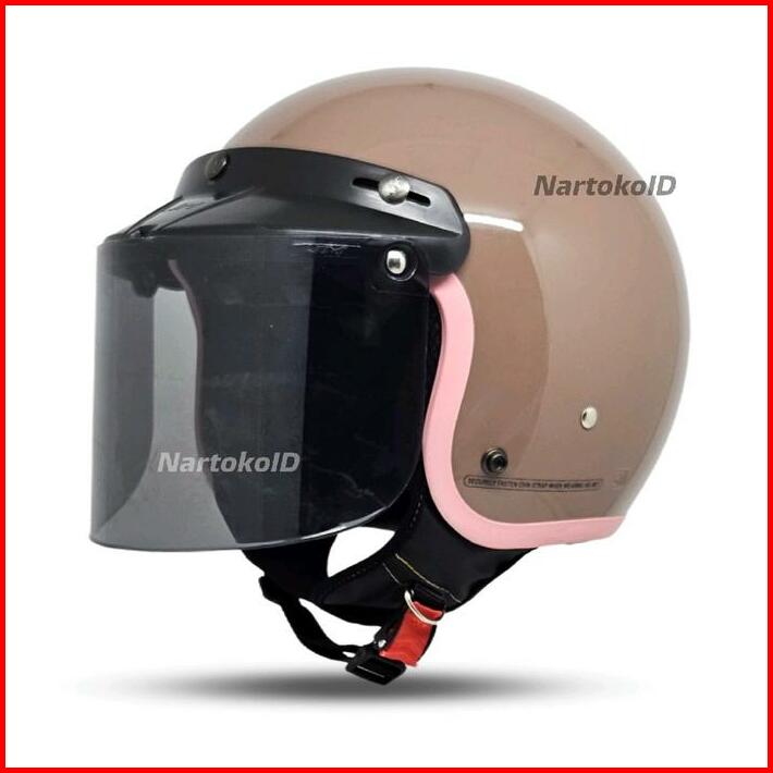 Helm Bogo Hijab Wanita Polos List Pink Flat Visor Irridium Full Leher Sni Motorcycle