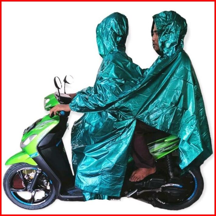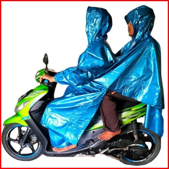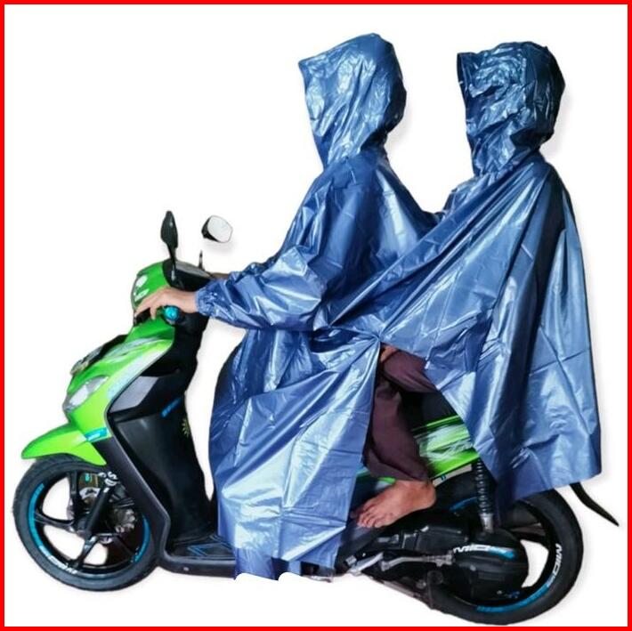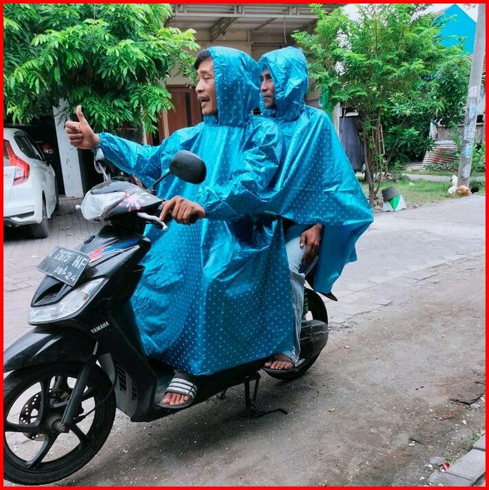 Jas Hujan Kelalawar Lengan Kepala Dua Pria Wanita Dewasa Tahan Air Bahan Pvc Motif Polkadot Ponco 2 Kepala