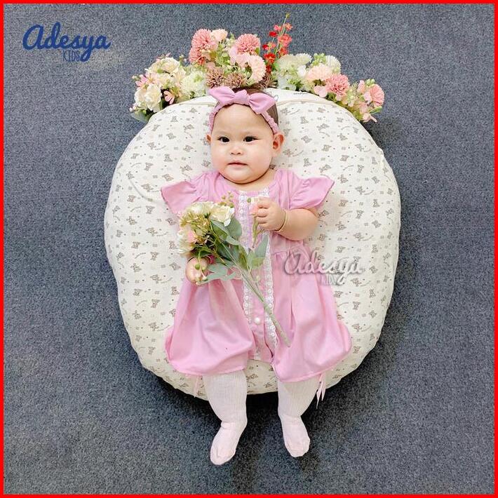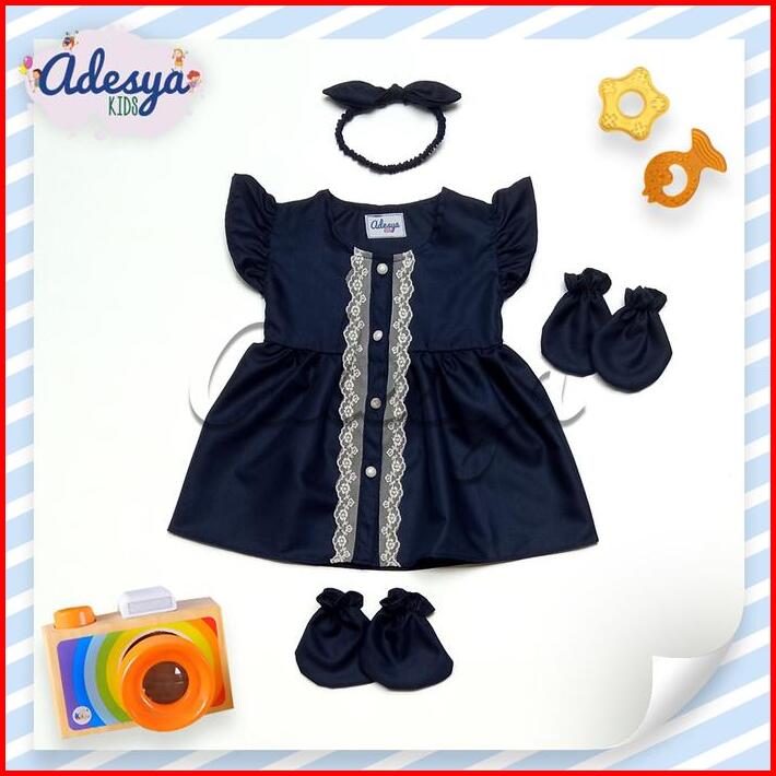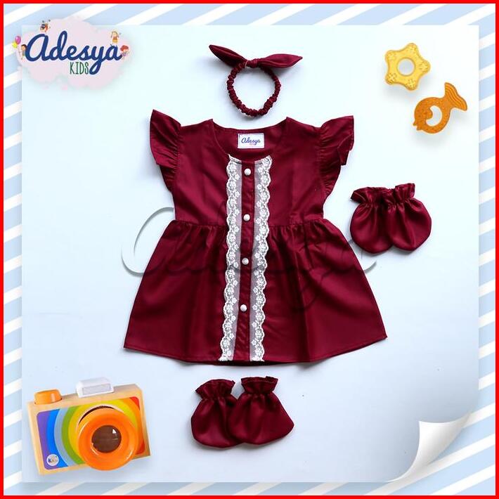 Baju Bayi Perempuan Newborn Set Sarung Tangan Kaki Dress Bayi Newborn Athifa 0-12 Bln Bayi Baru Lahir Cewek Katun Gaun A