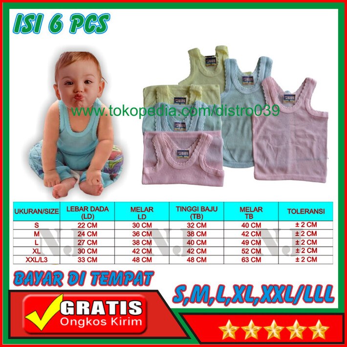Gbb 6 Pcs Pakaian Baju Kaos Dalam Anak Bayi Laki Dan Perempuan Lusinan