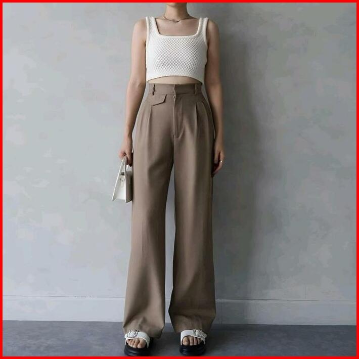 Oro Pants Highwaist Loose Pants Trousers Wanita Celana Anti Kusut Celana Kulot Wanita Celana Kantor Formal Polyester