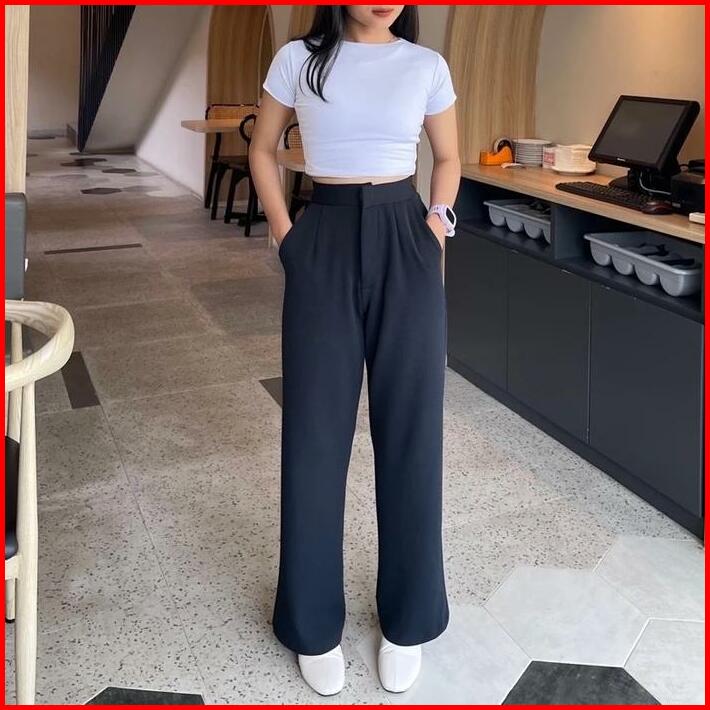 Celana Cozie Pants Wanita Highwaist Panjang Celana Kulot Wanita Korean Style Basic Pinggang Karet Kulot Loose Kantor For