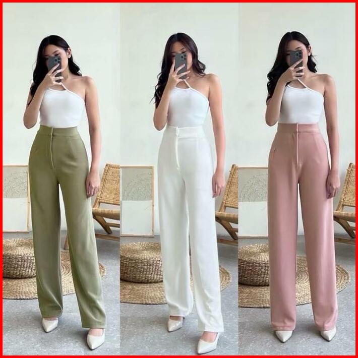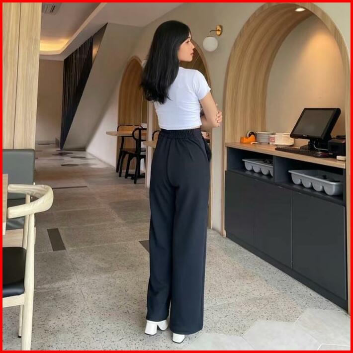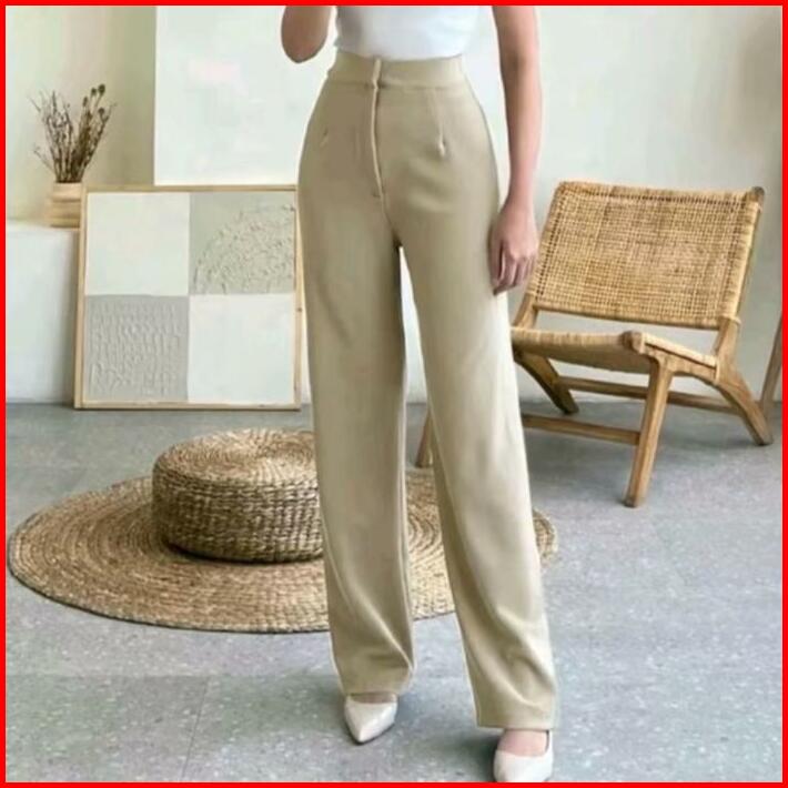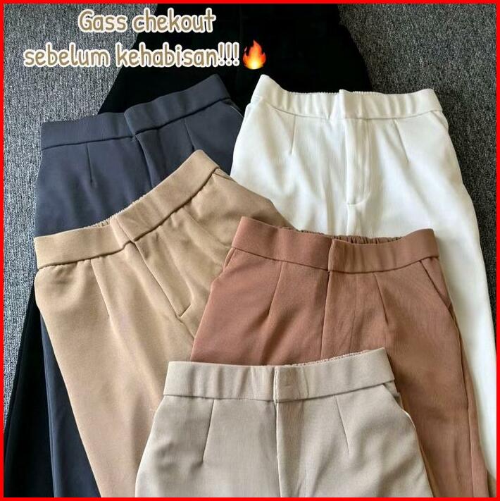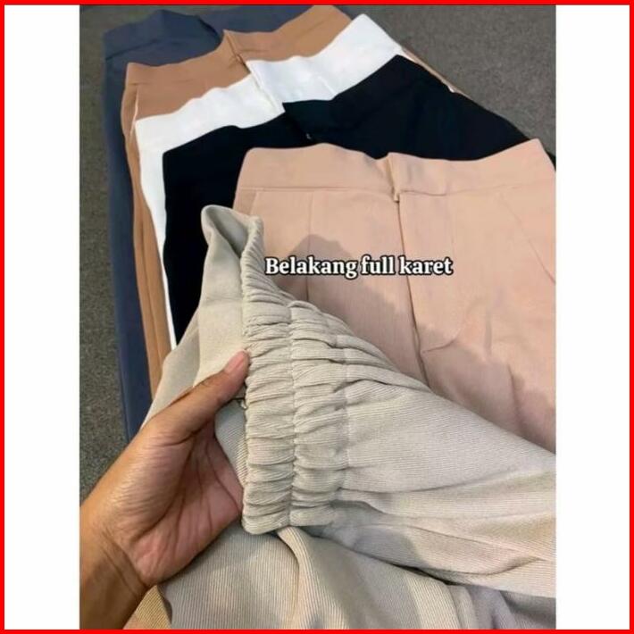 Cozie Knit Pants Loose Standar Celana Highwaist Panjang Wanita Kulot Rib Salur Premium Karet Melar Basic Korean Style Ce