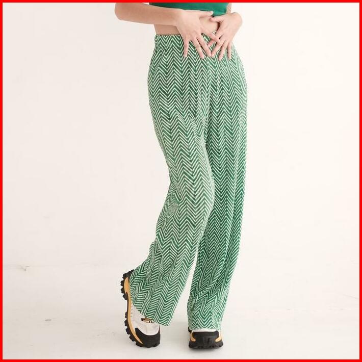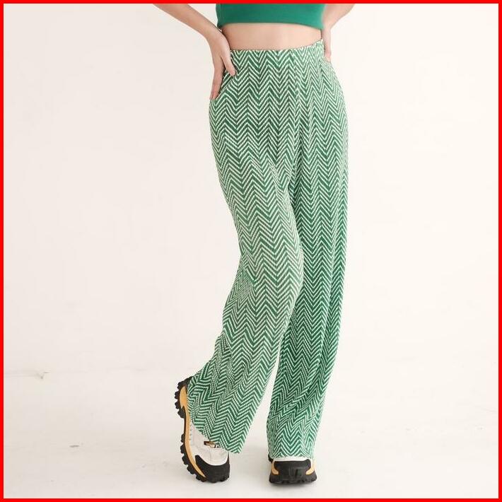 Cwj Prism Pants Green Celana Panjang Wanita Celana Plisket Celana Kulot Celana Highwaist Celana Loose Pleats Highwaist
