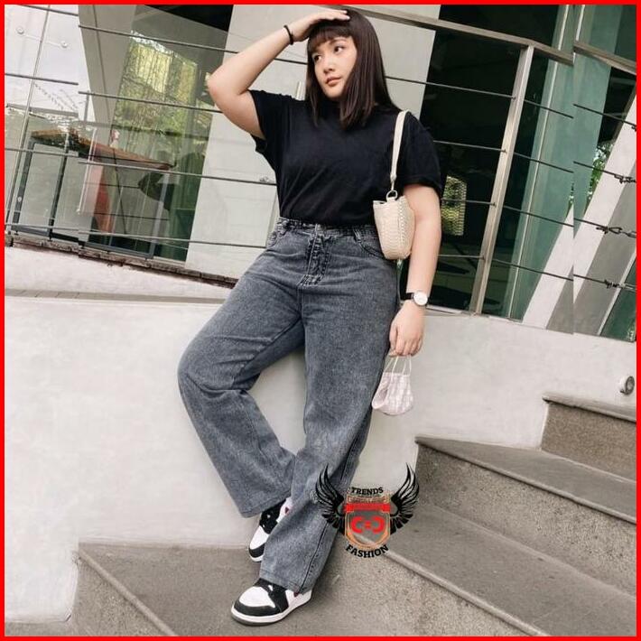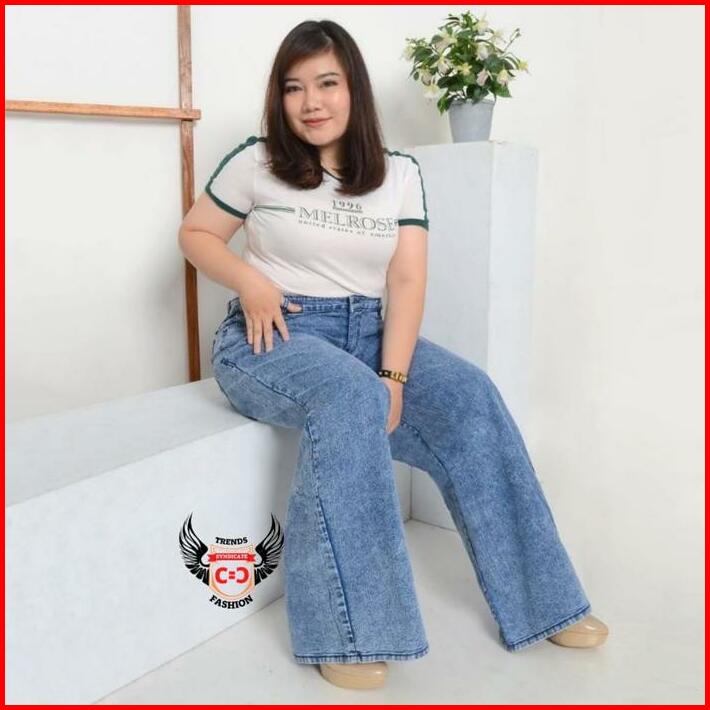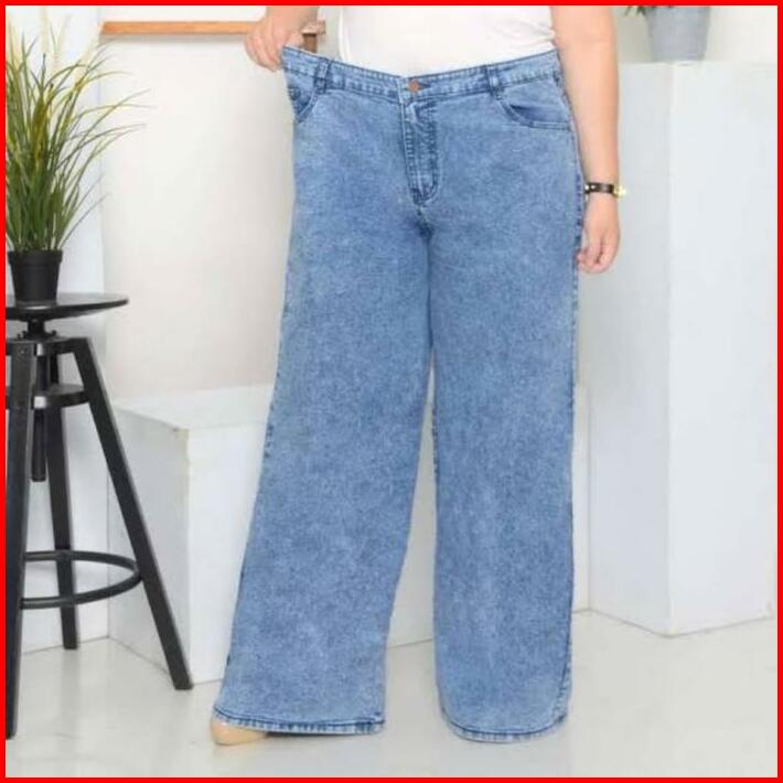 Jumbo Kulot Highwaist Jeans Wanita Loose Big Size