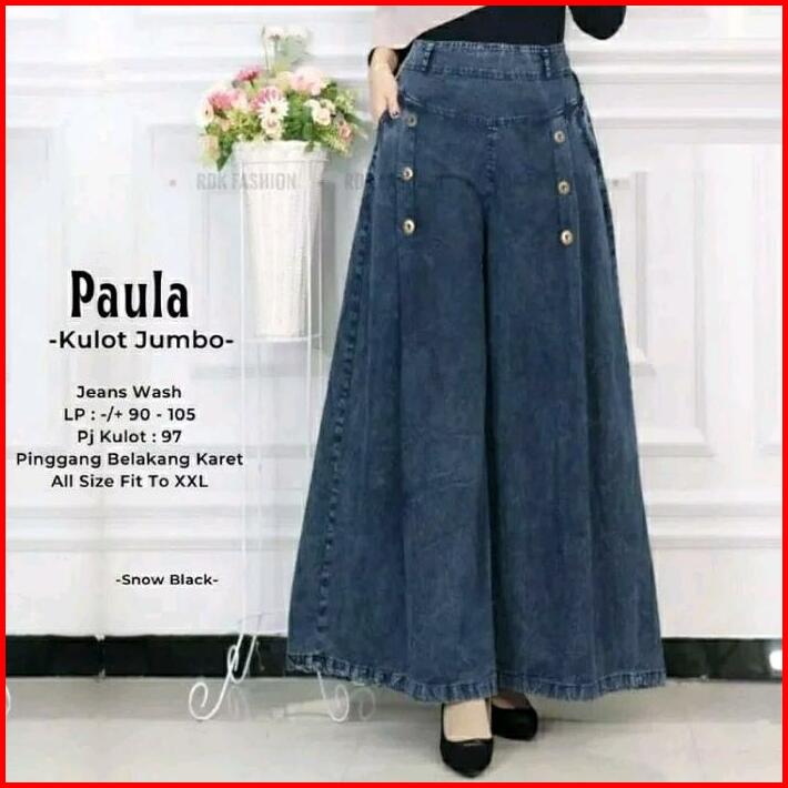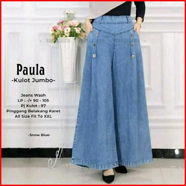 Celana Kulot Paula Jumbo Snow Jeans Wanita Nyaman Pinggang Karet Denim