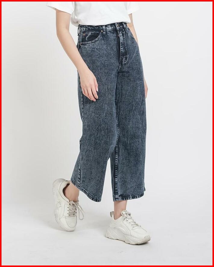 Esrocte Celana Panjang Denim Kulot High Waist Jeans Wanita P01