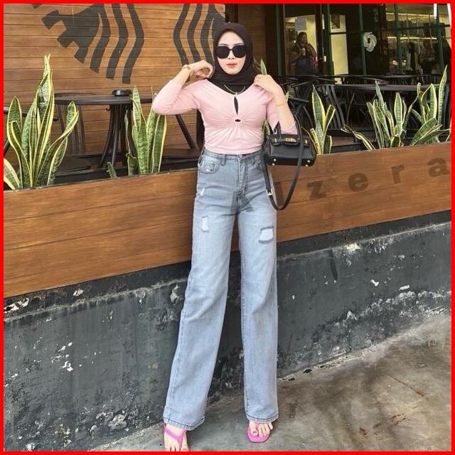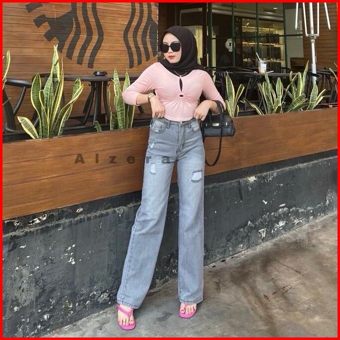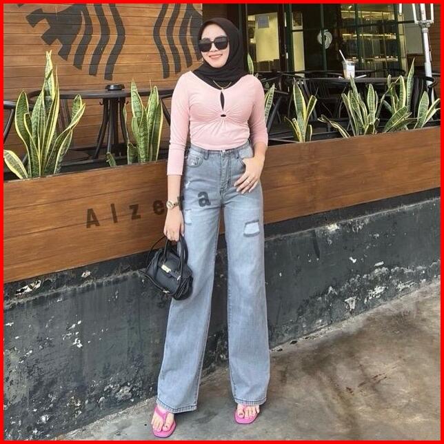 Alzera Highwaist Kulot Ripped Jeans Grey Tidak Tembus By Alzera Celana Panjang Wanita
