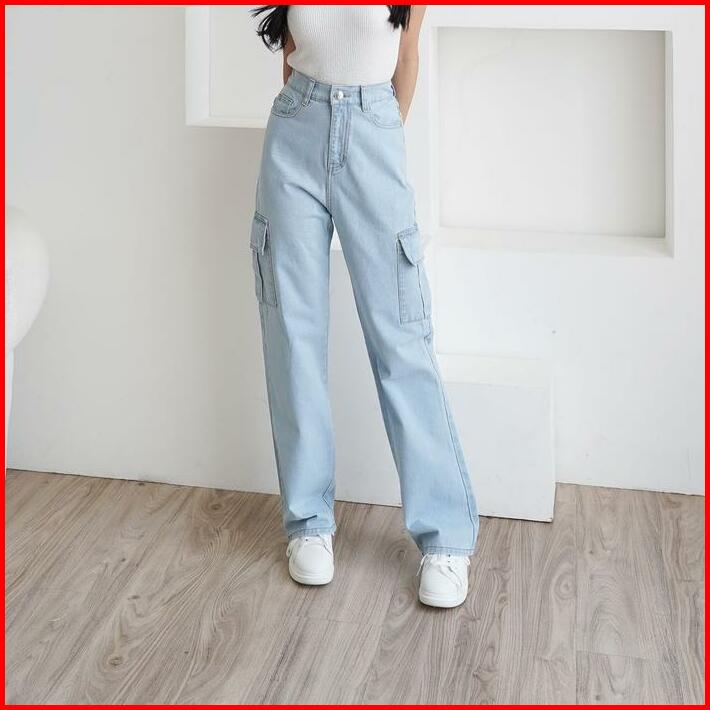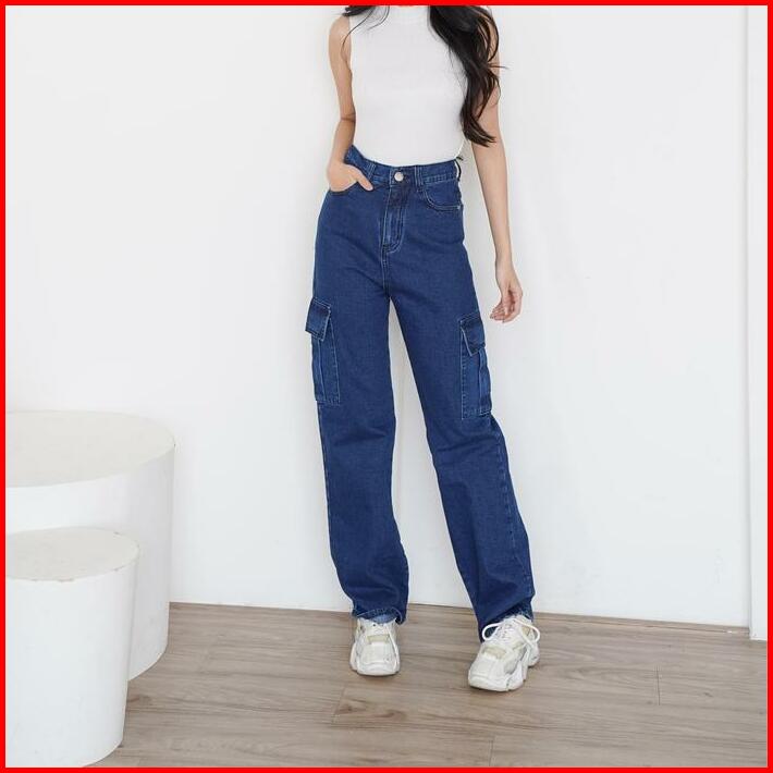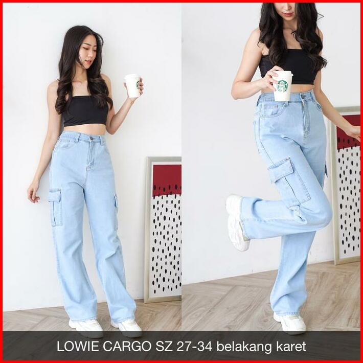Sys Clothier Lowie Cargo Series I Celana Jeans Wanita Normal Dan Jumbo Celana Cargo Highwaist Celana Jeans Wanita Non Me