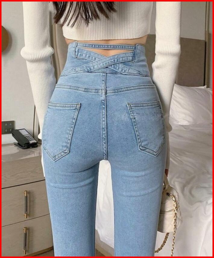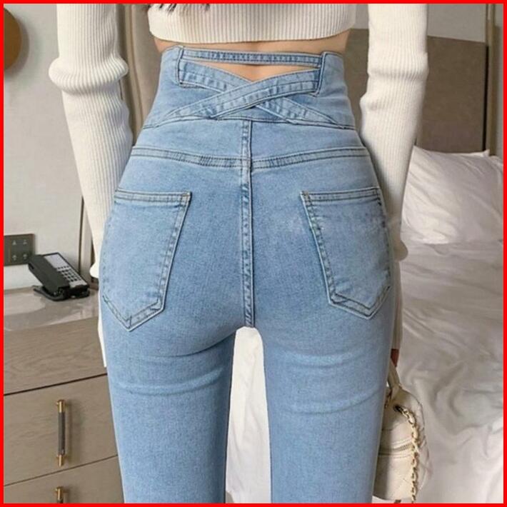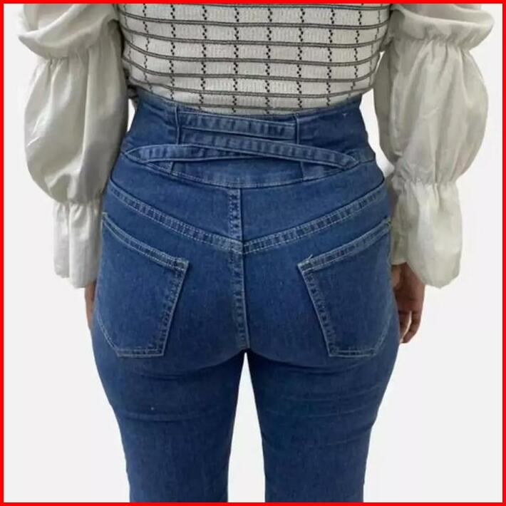 Celana Jeans Wanita Highwaist Boyfriend Silang Belakang Panjang Cewek