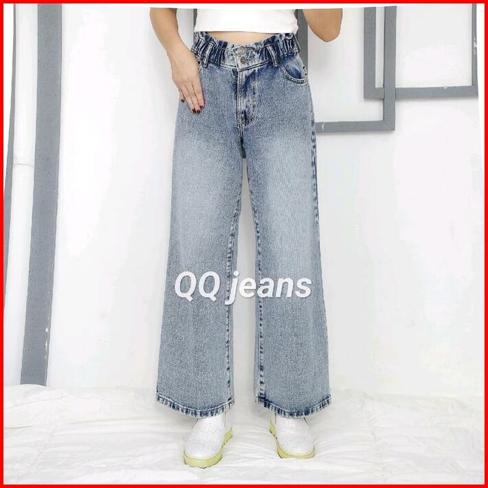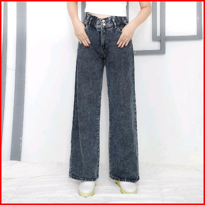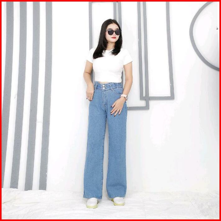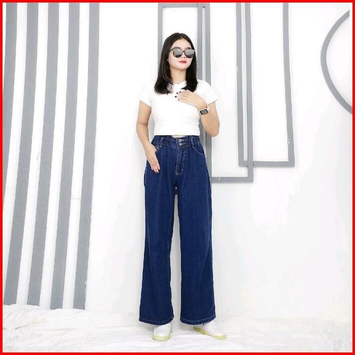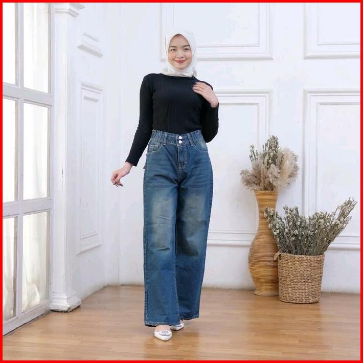 Higwaist Celana Kulot Ban Karet Kancing 2 Panjang Wanita Nyaman Jeans Premium Terbaru